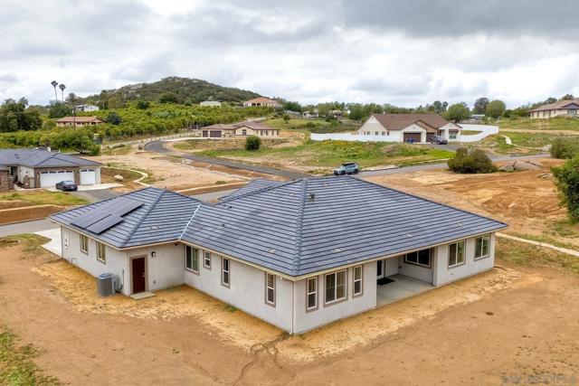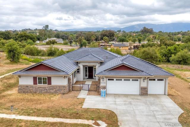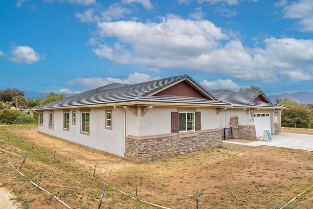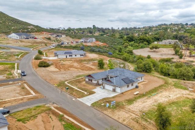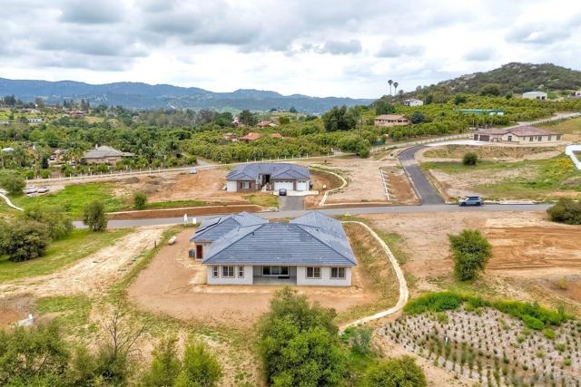 Final Model Home Move In Ready, New Construction. Set in the foothills of Valley Center, New Pointe Communities proudly presents their plan 1 single level estate home presented on 2 acre plus private and elevated lots. The plan 1 features high volume ceilings, a well-appointed gourmet kitchen, large prep island, 4 Bedrooms, 3.5 baths, with 3,307 sq ft open floor plan with a rare 4 car tandem garage. Great room with fireplace and high ceilings, led lighting, functional gourmet kitchen featuring white shaker cabinets and quartz countertops with generous center island and walk in pantry. An upgraded stainless steel appliance package, propane gas range and a built-in 48 inch GE Monogram Refrigerator/Freezer. Well-appointed master suite and master bath with large walk-in closet, dual vanities and a luxurious freestanding soaking tub, elegant standalone shower. Two secondary bedrooms with a shared full bath and private ensuite bedroom excellent for in-laws or a home office with a private entrance. Functional outdoor entertainment space in California room accessed through gorgeous oversized sliding doors. Indoor laundry/mudroom with direct access to the garage, owned solar system included. Home includes a 1 year fit and finish warranty, No HOA, very usable lots for an elaborate outdoor living space/ADU/Guesthouse or swimming pool. Near local golf courses, wineries and casinos. Plenty of room for RV parking and Gardening or Outdoor living space. Exceptional appliance package, solar included, room for ADU