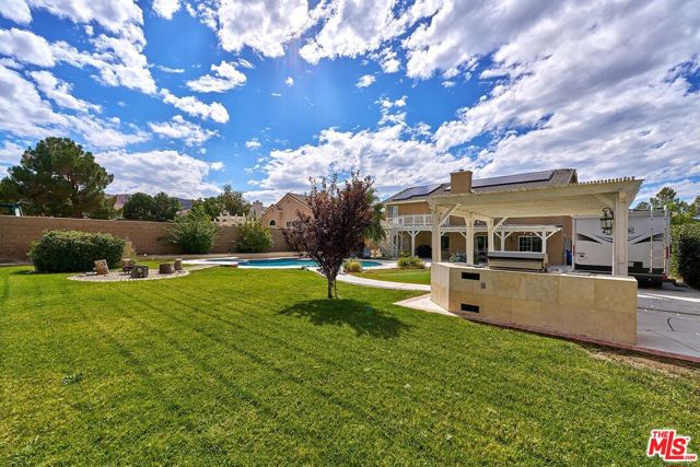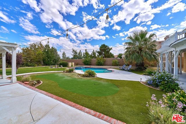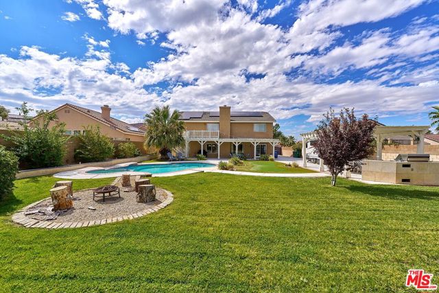 Welcome to the prestigious StoneGate Collection Series in West Palmdale, an award-winning private gated community featuring its own 3-acre private park near Quartz Hill. This elegant residence is truly one of a kind, blending luxury upgrades with timeless design.The home greets you with two dramatic 30-foot pillars and a grand double-door entry, leading into a unique Jack & Jill staircase layout. Inside, you'll find over $300,000 in upgrades, including a fully renovated chef's kitchen, all bathrooms, and beautiful wood flooring throughout. The spacious floor plan showcases a formal living room, formal dining room, and a large family room with a cozy fireplace that flows seamlessly into the kitchen and breakfast nookcreating the perfect great room for gatherings.The gourmet kitchen is a showstopper with custom cabinetry, stunning countertops, a large island, and an extended breakfast bar. A generous main-floor bedroom with full bath offers flexibility for guests or multi-generational living. Upstairs, discover four additional bedrooms, including a luxurious primary suite, plus a loft and two full bathrooms.Step outside to your own private retreat on a 13,195 sq. ft. lot, complete with a sparkling pool & spa, covered patio, BBQ area, oversized balcony, and RV parkingperfect for entertaining. The property is also equipped with 2 Tesla Powerwall battery systems and Tesla Solar Panels, Tesla Wall Charger ensuring energy efficiency and sustainability. THIS HOUSE IS SURELY ALL YOU CAN DREAM OF!!!