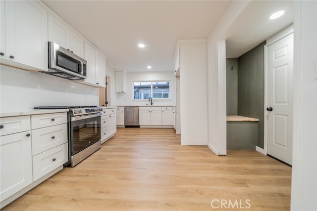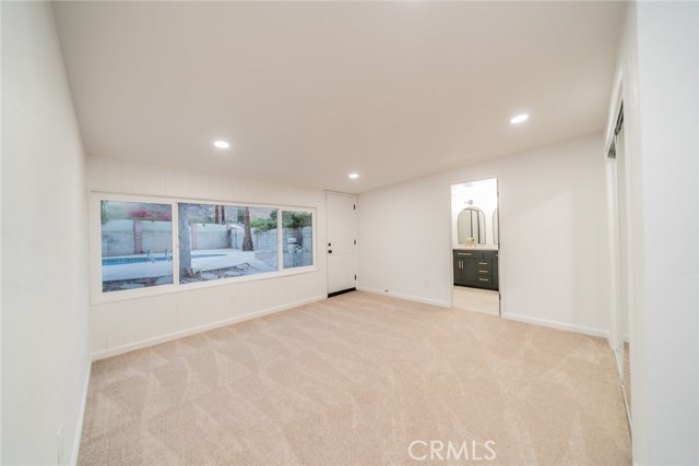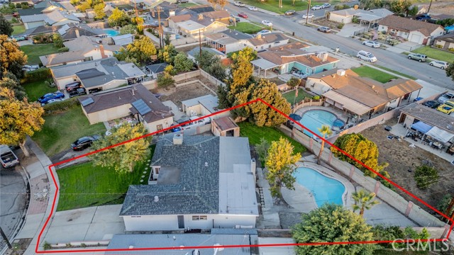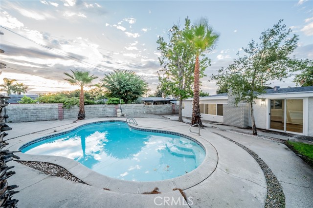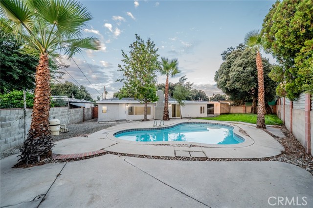 Step into comfort and modern style in this beautifully updated 5-bedroom, 2-bathroom pool home located in a desirable North San Bernardino neighborhood. Blending timeless charm with contemporary finishes, this single-level residence offers a thoughtfully designed layout and high-end upgrades throughout. From the moment you arrive, you’ll be drawn in by its fresh curb appeal, featuring a newly seeded lawn, mature shade tree, and colorful flower beds. Inside, natural light pours into the open living spaces, highlighted by recessed lighting, wood laminate flooring, and designer tile. The inviting living room features a large picture window with views of the front yard. Steps away you will find the spacious family room featuring a cozy brick fireplace, perfect for entertaining or some family game night. The fully remodeled kitchen flows seamlessly from the living and dining area, showcasing quartz countertops, new crisp white shaker cabinetry, stainless steel appliances, and a stylish tile backsplash. It's perfect for both daily living and entertaining. All five bedrooms are well-proportioned, offering generous closet space and ceiling fans. Both bathrooms have been tastefully renovated with modern vanities, updated lighting, and sleek tilework. The hall bath includes a reglazed shower and tub combo, while the private primary suite features a spacious step-in shower, dual vanity, and abundant natural light. Step outside to a large, private backyard ideal for enjoying Southern California’s year-round sunshine. Whether hosting gatherings or relaxing poolside, the built-in swimming pool makes this home perfect for indoor-outdoor living. Additional conveniences include an indoor laundry room and a functional mini mudroom. Located near schools, shopping, and dining, this move-in-ready home combines style, comfort, and location. Don’t miss your chance to make it yours—schedule a private showing today.