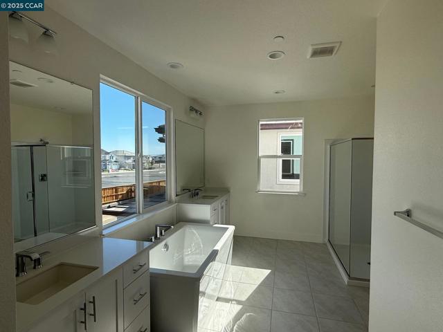 Brand new home with a large yard at Serena is move-in ready for it's lucky new owners! Home has been highly upgraded with designer finishes, white cabinets, custom backsplash, LVP flooring and more. This exceptional home is situated on a cul de sac and offers a 55' plus backyard perfect for a pool! Additionally, there is a Jr. suite with a full bath on the lower level- just waiting for extended family or guests as well as a flex space perfect for a den or office. Home also has a cook's kitchen with large center Island, plenty of cabinets and a seperate back kitchen, built-in stainless appliances, soaring ceiling and large outdoor covered California Room. The upper level offers spacious bedrooms, laundry, shared bath, loft and sumptuous Primary suite with oversized shower, freestanding soaking tub, and walk-in closet. SOLAR is INCLUDED. Don't delay!
