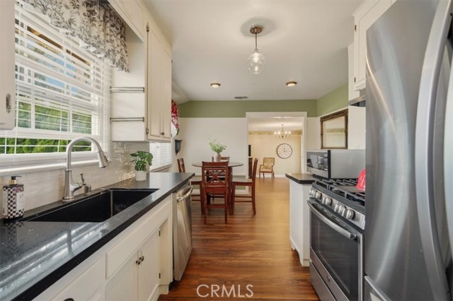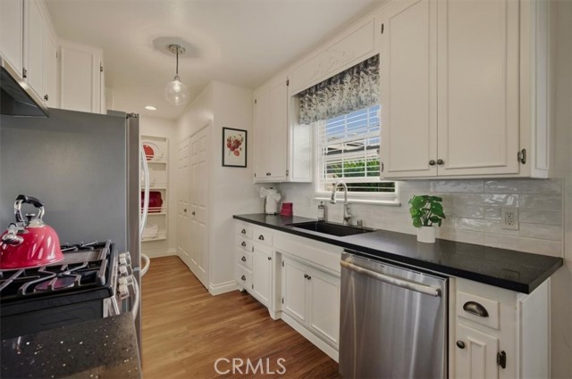 Charming Home on a Corner Lot with Great Curb Appeal. Welcome to this well-maintained 3-bedroom, 1-bath home situated on a desirable corner lot in a quiet neighborhood. From the moment you arrive, you'll appreciate the charming front porch, lush landscaping, and strong curb appeal. Inside, the living room is spacious with a fireplace and 2 doors that go to the back patio. The bright and inviting kitchen offers ample space for cooking and gathering, while natural light fills the living areas, creating a warm and welcoming atmosphere. All three bedrooms are well-sized, perfect for family living, guests, or a home office. Step outside to enjoy the beautifully landscaped backyard featuring a private patio area surrounded by mature plants—ideal for relaxing or entertaining. The oversized 2-car garage provides plenty of room for vehicles, storage, or a workshop. This home combines comfort, convenience, and character in one appealing package—don’t miss your opportunity to make it yours!