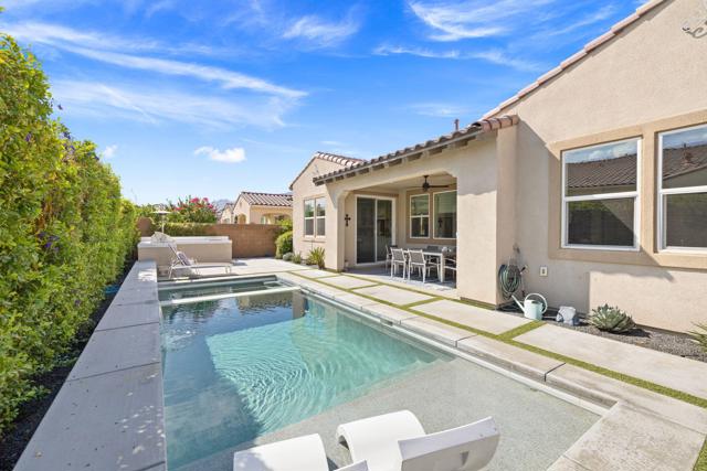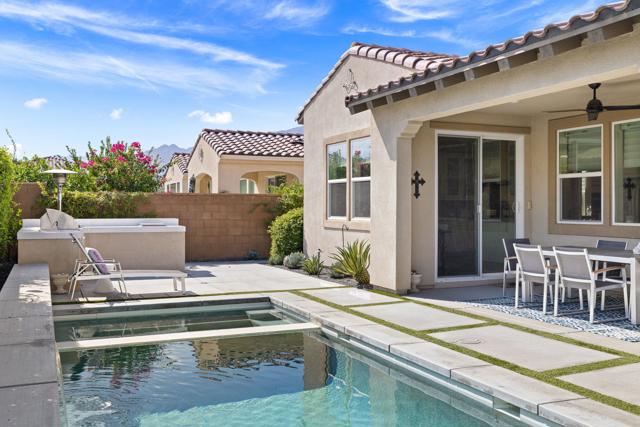 Location, Location, Vacation! This Stylish and Chic Desert Retreat is the Ultimate Escapism, Highlighting Contemporary Elegance, Through Calming Colors with Effortless Indoor/Outdoor Flow. Exudes Pride of Ownership and is Everything Today's Buyer is Looking for... BRIGHT, AIRY and OPEN with an Abundance of Natural Light. This Uniquely Designed 3BR, 4BA Home has a Guest Wing with 2BR's and a Living Room that could be Converted to a 4thBR. The Spacious Kitchen offers SS Appliances, Granite Countertops, and a Large Island ideal for Gathering. Each Spacious Bedroom includes an Ensuite Bath and Polarity from The Primary Bedroom, providing Ultimate PRIVACY for Family or Guests. You'll also Appreciate the RELAXING Backyard w/a Sparkling Pool, Relaxing Spa, Covered Patio, Built-in BBQ which makes it PERFECT for Enjoying Sunny Desert Days and Lazy Evenings under the Stars. Drought Tolerant Landscaping, Stylish Shutters, an Oversized Soaking Tub and an Extra Deep Tandem Garage for Storage or Golf Cart. Truly a Triple Option of Opportunity; a Primary Residence, a Vacation Getaway -or- a Fantastic Rental Opportunity that could be Ready for Revenue! BONUS: Low HOA Dues, Community Pool/Spa, Close to Old Town, Restaurants, Shopping, Golfing, the Music Festivals and All that East Valley has to Offer!