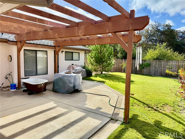 Welcome to this inviting 3 bedroom, 2 bath home tucked away in a peaceful eastside Paso Robles neighborhood near Oak Creek Park. This area is known for its mature trees, well-maintained streets, and friendly community atmosphere — a place where neighbors wave hello and evening strolls under golden sunsets are part of everyday life. Just minutes from shopping, local schools, and the dog park, this location offers the perfect blend of convenience and tranquility. The home’s curb appeal sets the tone with a drought-resistant front yard designed for low maintenance and sustainability. A covered front porch creates the perfect spot for morning coffee or chatting with neighbors, while the fully fenced backyard offers privacy and space for outdoor enjoyment. The back lawn, garden area, and concrete patio shaded by a wooden trellis make it easy to entertain, relax, or enjoy a Paso Robles evening surrounded by your own bit of nature. Inside, warmth and comfort define the space. Beautiful hardwood floors run seamlessly throughout the home. Vaulted ceilings and recessed lighting add height and brightness, creating a sense of openness and modern style. The living room centers around a cozy gas fireplace framed by custom built-in bookshelves — a perfect gathering place for quiet nights or hosting friends. The kitchen captures the character of the home with natural oak cabinetry providing a cohesive and inviting design. The layout offers plenty of storage and counter space, ideal for both daily cooking and entertaining. Skylights above the dining area bring in soft natural light, and the open flow between the kitchen, dining, and living spaces makes this home feel connected and welcoming. The primary suite offers a private retreat with direct access to the backyard — perfect for enjoying cool morning breezes or quiet evenings under the stars. The en suite bathroom features a relaxing soaking tub, double vanities, and tasteful finishes that make it both functional and indulgent. Skylights in the hallway bathroom add an airy touch, and the home’s thoughtful floor plan ensures every space feels bright, comfortable, and efficient. A two-car attached garage with interior access, a side storage shed, a solar system for energy efficiency, and a fully fenced backyard ideal for pets or play have been thoughtfully designed. This home offers lasting value for homeowners and investors alike near parks, shopping, and the beauty of Oak Creek Park.