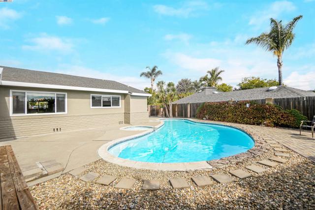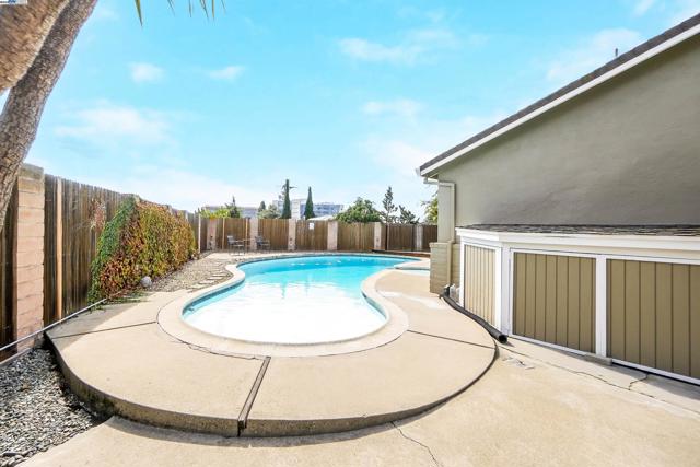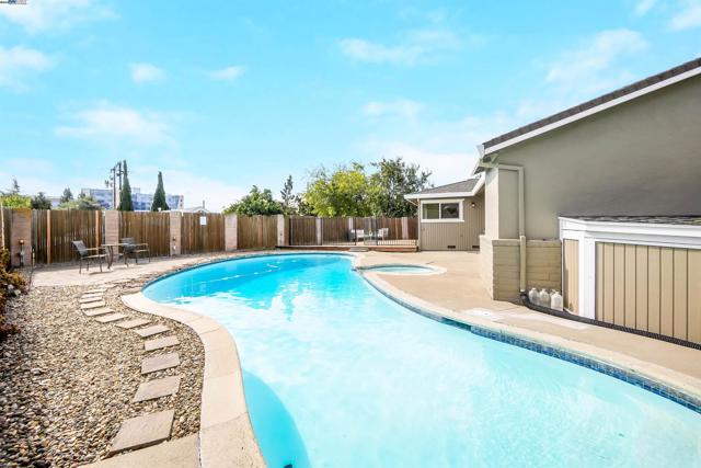 Welcome to 19638 Barclay Road, Castro Valley! This charming single-level home offers three spacious bedrooms and three full baths, perfectly blending comfort and functionality. The open-concept floor plan features generous living spaces, a cozy gas fireplace, and an abundance of natural light throughout. Situated in a quiet court on a flat lot, this home is ideal for entertaining. The backyard is a true retreat featuring a large deck, sparkling swimming pool, and plenty of space for outdoor dining and relaxation. The full bathroom located in the back of the house is conveniently accessible from both inside the home and the backyard—perfect for poolside use. Recent updates include fresh interior and exterior paint, new carpet, and a new water heater. The finished garage provides excellent storage and workspace options. Located in one of Castro Valley’s most desirable neighborhoods, you’re just a short walk from downtown shops, Lake Chabot, and scenic hiking trails.