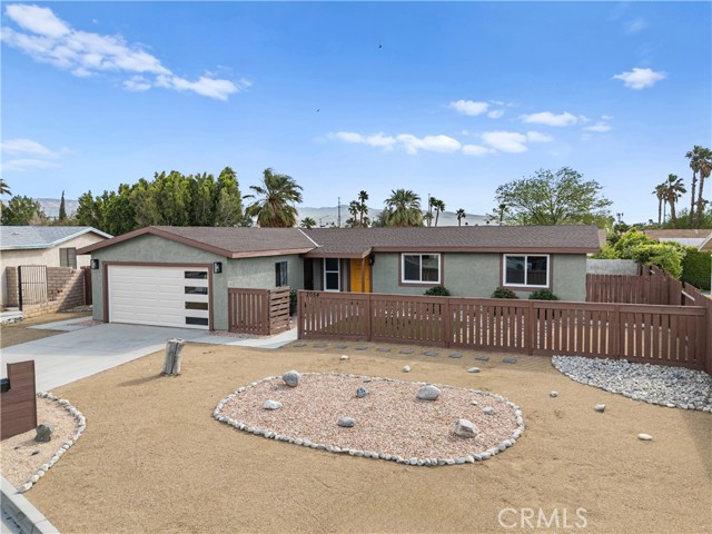 Welcome to this stunning 4-bed, 2-bath home in Desert Park Estates, Palm Springs! This home has been completely transformed with a modern open-concept design—featuring a new kitchen with updated cabinets, recessed lighting, and laminate flooring throughout. Enjoy new double-paned windows, a new sliding door, new roof, new paint inside and out and a new front fence. The spacious great room blends the kitchen, dining, and living areas—perfect for entertaining. Step outside to your private backyard retreat with breathtaking Mt. San Jacinto views and space to build an ADU. This home is a modular home installed on permanent foundation you own the land and there is no land lease fees or no HOA. Conveniently located near downtown Palm Springs shopping, dining, and nightlife, with easy access to Coachella, Stagecoach, casinos, and PS Airport. No HOA, low taxes, and you own the land! Move-in ready desert gem.