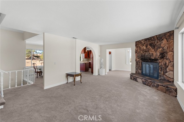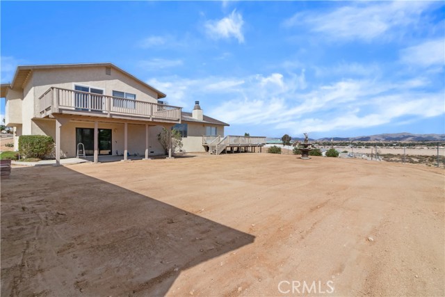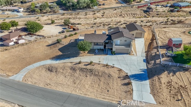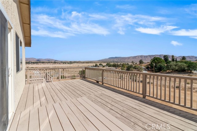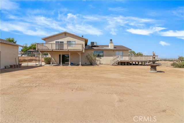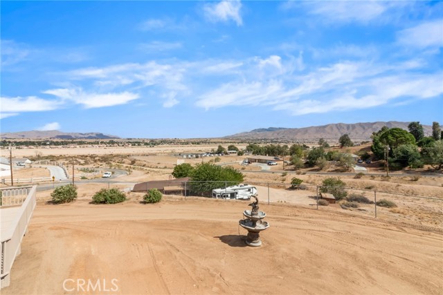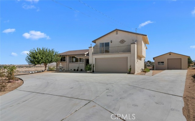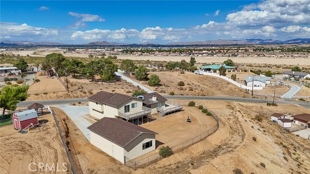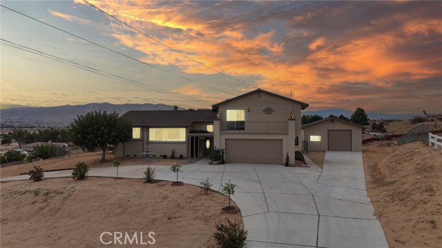 Boasting expansive, unobstructed views of the Mojave River and Marianna Mountains, stretching toward Big Bear, this 2,384 sq ft, Tri-level home is a haven for those seeking tranquility and natural beauty, in a convenient location. Set on nearly an acre, the freshly painted 3 bedroom, 2.5 bath custom home features many classic design elements, including beautiful exposed beams, a brick hearth with wood-burning stove, a gorgeous stone fireplace, and a floor plan that maximizes space and functionality. Dramatic, oversized bay windows frame the breathtaking views and flood the home with natural light. Outside, enjoy two large decks, plus a front balcony off of the Master bedroom, and a rear covered patio perfect for relaxing or entertaining. A large circular driveway leads to a detached RV garage with a side glass slider and overhead door, with ample space for a boat, RV, cars, or a workshop. This oversized garage is a dream for hobbyists, complete with extensive shelving. Horses are invited too! This property is zoned for up to 3 horses, as it's a perfect location to go on relaxing rides along the riverbed! Located approximately 3 minutes from Bear Valley, and just minutes from the vibrant Jess Ranch Shopping Center, you’ll have easy access to excellent restaurants, a movie theater, home improvement stores, grocery stores, and more. Located at the end of a very low-traffic street, this home combines the best of secluded country living with modern conveniences, making it a rare find in Hesperia. Don’t miss the opportunity to own this exceptional property with unparalleled views and endless possibilities!