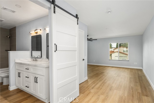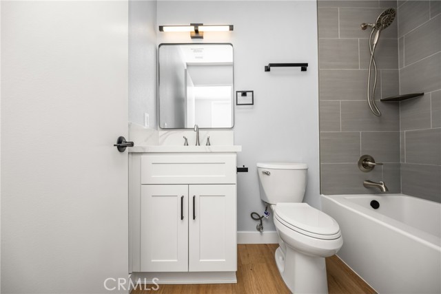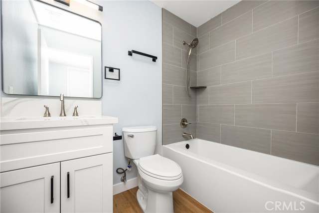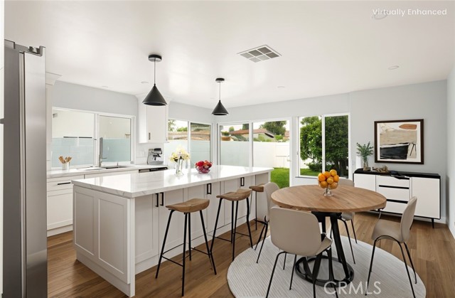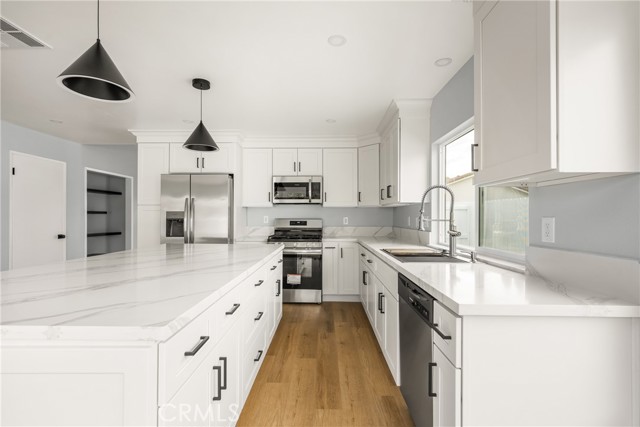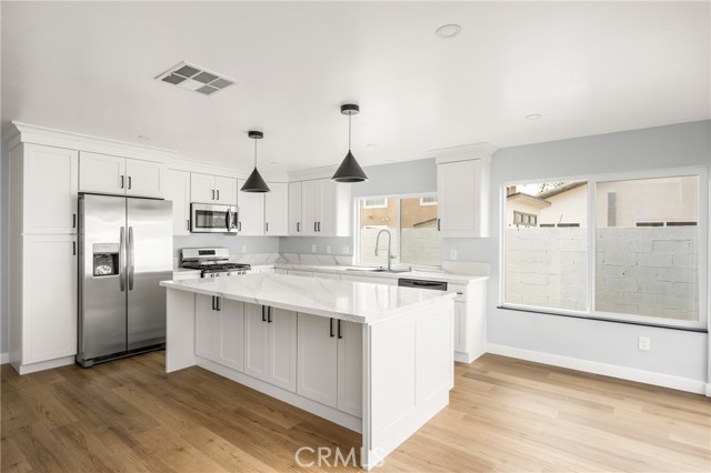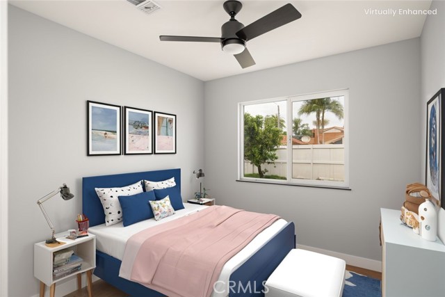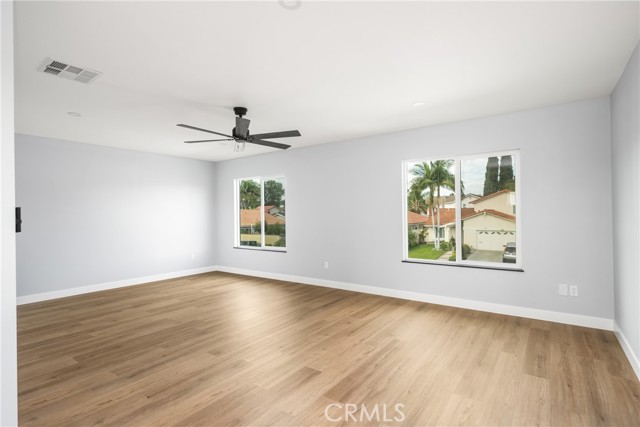 Welcome to The Colony! Nestled in a beautiful, well-established, and family-oriented neighborhood, this stunning four-bedroom, three-bath home has been completely remodeled. The bright, modern kitchen features stainless appliance, crisp white cabinetry, oversized island, breakfast bar and dinning area, beautiful countertops, and natural-toned flooring throughout. Enjoy a cozy family room with high ceilings and modern fireplace. There is a convenient downstairs primary bedroom, along with two guest bedrooms and a hallway bath. Upstairs, you’ll find an enormous primary suite offering elegant bathroom with privacy and comfort. Landscape front and back with fruit trees and new sod. Additional upgrades include high ceilings, laminate flooring, ceiling fans, new air conditioning, heating system, water heater, new windows, new roof, and fresh paint. Enjoy the association amenities with private clubhouse, 3 Olympic-size pools, spacious parks, BBQ Area, Clubhouse, tennis courts and basketball courts, and tree lined jogging paths. Located on a quiet cul-de-sac, this home is centrally positioned near shopping centers, freeways, and award-winning schools. This is one property you won’t want to miss!