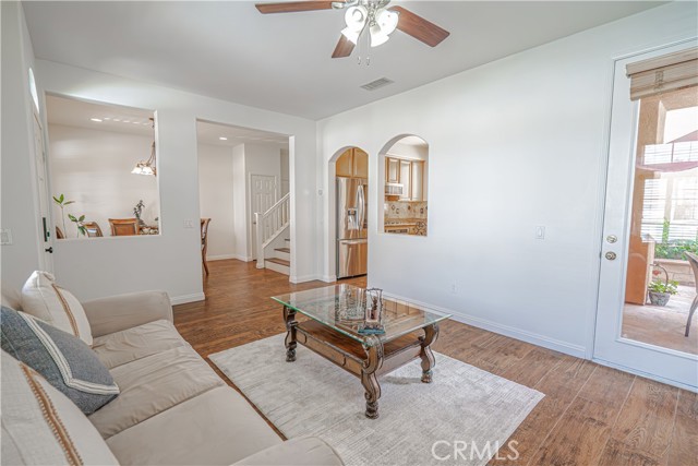 Welcome Home! Featuring a stunning Montevista home situated in one of the most desirable newer communities in Valencia. With an open floor plan that seamlessly connects the living spaces, making it perfect for both daily living and entertaining, you do not want to miss this one! Home features three bedrooms and two and half baths, upgraded laminate wood flooring, window treatments, fresh paint throughout, mirrored closet doors in all three bedrooms, upstairs laundry and attached two car garage. Enjoy cozy evenings by the fireplace with custom mantel and built in media niche in the living/family room. The chef's kitchen is equipped with top of the line newer stainless steel appliances, ample cabinet space including large pantry, kitchen nook and sliding doors out a low maintenance, cozy patio. Light and bright formal dining area provides opportunity for those special moments shared with family and friends. The primary bedroom offers a walk in closet plus a large secondary closet with beautiful mirrored doors. Upstairs bathroom(s) include elegant Corian counters, beautiful stone tile flooring with bathtub and shower in each and extra cabinetry ensuring both functionality and style. One of the lowest HOA combos in Valencia, close proximity to schools, indoor/outdoor shopping, Valencia's 20 mile long paseo system, and freeways.