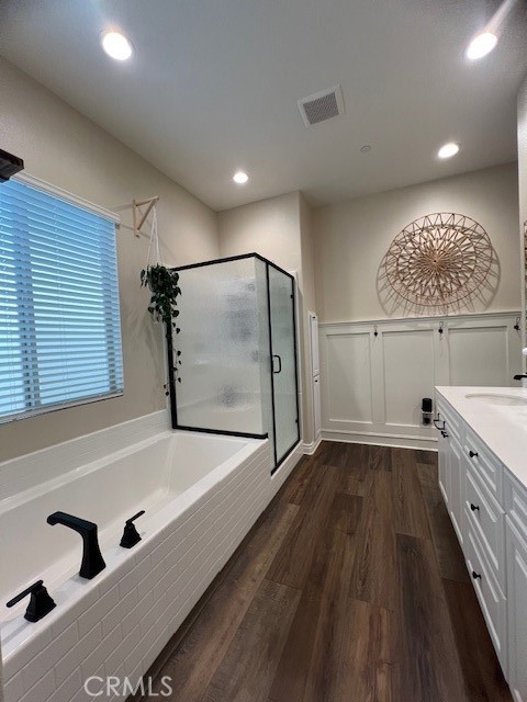 Welcome to this beautifully upgraded single-story home offering comfort, style, and modern living. Featuring 3 bedrooms, 2 baths, and a spacious bonus room, this home boasts an open and inviting layout with 10-foot ceilings, recessed lighting, and luxury vinyl plank flooring throughout. Enjoy upgraded carpet in all bedrooms and the bonus room for added comfort. The spacious kitchen is a true centerpiece, showcasing stone countertops, soft-closing cabinets and drawers, premium appliances, a large kitchen island with breakfast seating, and plenty of counter and cabinet space—perfect for cooking and entertaining. Bathrooms feature matching stone counters, self-closing drawers & cabinet, with sleek matte black fixtures throughout, including faucets, shower trim, door handles, and hinges. This home is designed with smart and energy-efficient features, including an energy-efficient HVAC system, tankless water heater, and a leased solar system. The smart home app monitors the garage and outdoor lighting, with smart switches controlling the porch and back patio lights for convenience and security. Additional highlights include custom 9-foot doors, a designer front door, 2-inch blinds, and elegant moldings and trims throughout. The low-maintenance backyard offers a concrete patio and side yard, vinyl fencing, and a widened driveway for extra parking. Located in a desirable community with resort-style amenities including a pool, spa, children’s pool, fitness center, yoga room, clubhouse, parks, soccer field, community garden, and dog park. With over $100,000 in upgrades, this home perfectly blends modern technology, energy efficiency, and designer finishes—don’t let this one get away!