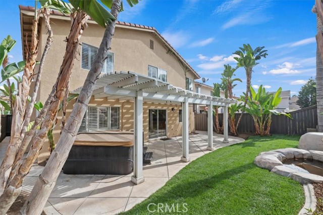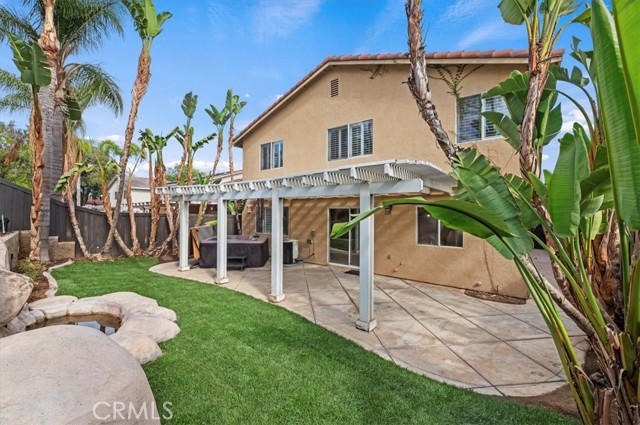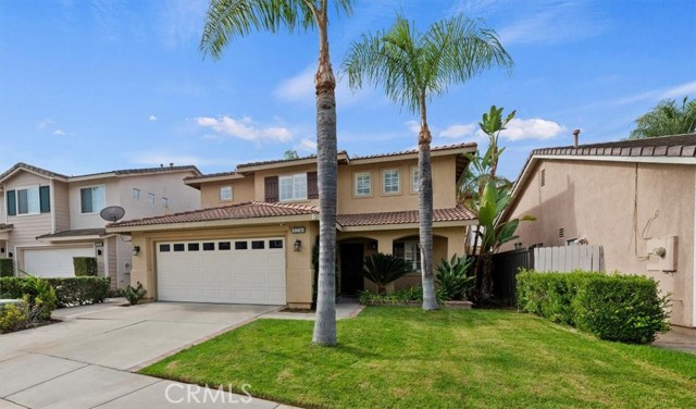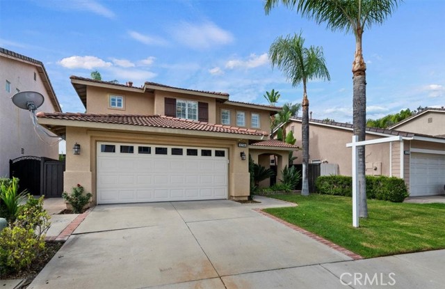 Welcome to this charming single family home nestled in a quiet gated community of Ashwood in South Corona. Boasting a flexible floor plan and desirable features, this residence balances comfort and style. With a blend of indoor and outdoor living spaces, this home is ideal for both entertaining and everyday living. Features include 4 bedrooms and 3 baths with one of the bedrooms and baths downstairs. Highlights include high vaulted ceilings upon entry with a very open-concept layout connecting the living, dining and kitchen areas - a fireplace in the family room adds warmth and ambiance. Central cooling and heating provide year round comfort. The rear yard offers much privacy with mature palm trees, a calming waterfall coming off the slope, and a private above ground spa to soak in and enjoy that glass of wine at the end of a long day. Situated in the 92881 zip code, this home in a well established location of South Corona, literally within 2 blocks of Santiago High School and Orange Elementary School - also close to shops, entertainment and nearby to both the Crossings and Dos Lagos. Hurry on this one as it may not last.