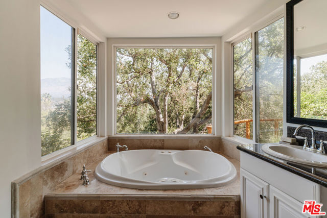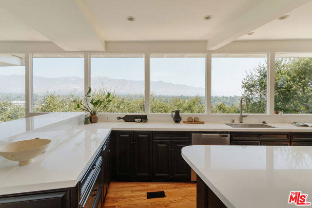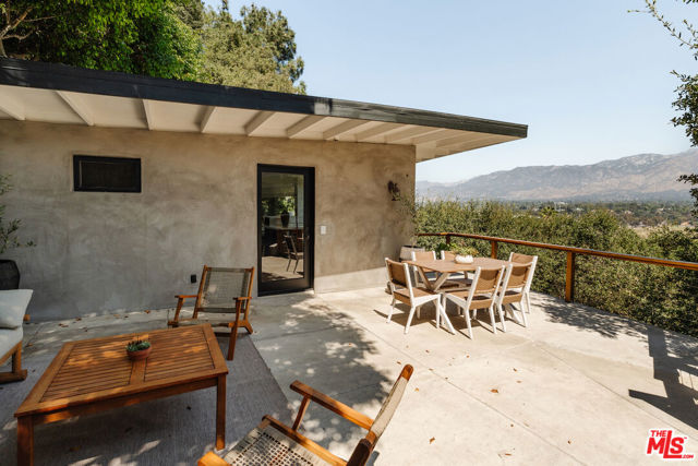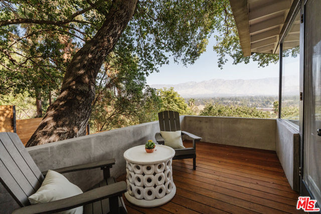 Perched on a 14,000 sf lot, this architectural work of art by W. Melville Garten offers the ultimate in privacy and refinement. Located in Pasadena's coveted Linda Vista neighborhood, this 3-bedroom, 3-bath with a guest house commands breathtaking views of the San Gabriel Mountains and the iconic Rose Bowl. Expansive windows flood the open living and dining areas with natural light, framing uninterrupted vistas that blur the line between indoors and out. At the heart of the home, the chef's kitchen boasts new quartz countertops, a wine fridge, and premium stainless steel appliances, and flows onto a spacious patio perfect for al fresco dining with sweeping views. On the main level, a versatile bedroom serves equally well as a guest room or study, paired with a nearby bathroom highlighted by a classic clawfoot tub. The lower level is anchored by a tranquil primary suite with a private deck, expansive walk-in closet, and spa-inspired bath featuring a deep soaking tub, separate dual-head shower, and double vanity. Along the same hall, a third bedroom and a den, both featuring floor-to-ceiling glass doors that open to the back deck and garden, are complemented by an updated bathroom with a soaking tub and steam shower. The backyard is a dream for outdoor living and entertaining, featuring numerous seating areas and pathways that wind through lush grounds landscaped by the incredible Chaparral Studio Gardens. The detached guest house offers the perfect retreat for visitors or a creative workspace. A two-car garage with EV charging plus three additional spaces provides ample parking. 910 Glen Oaks Boulevard embodies the rare union of architectural legacy and modern comfort, where seamless indoor-outdoor living, inspiring views, and a tranquil sense of retreat define exceptional Pasadena life.