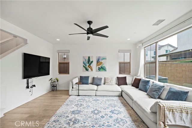 PAID OFF Solar with 11 Panels. Welcome to 4855 Pastel Ln, located in the desirable Ontario Ranch / Park Place community. This spacious home features 4 bedrooms and 3 bathrooms across approximately 2,402 sq ft, built in 2018. The open floor plan seamlessly connects the gourmet kitchen, dining, and living areas, with large windows bringing in abundant natural light. On the main floor, there’s a convenient bedroom and full bathroom—perfect for guests or multigenerational living. Upstairs, the master suite offers dual vanities, a soaking tub, separate shower, and walk-in closet. Two additional bedrooms, a full bathroom, a loft, and a laundry room complete the upper level. Step outside to a low-maintenance backyard with no rear neighbors, ideal for relaxing or entertaining. The community features resort-style amenities including a clubhouse, junior Olympic pool, fitness center, spa, game room, theater, business center, tennis and basketball courts. This home perfectly blends modern comfort, functionality, and convenience—an ideal choice for families seeking a vibrant lifestyle in Ontario Ranch.
