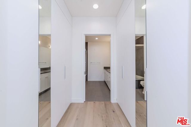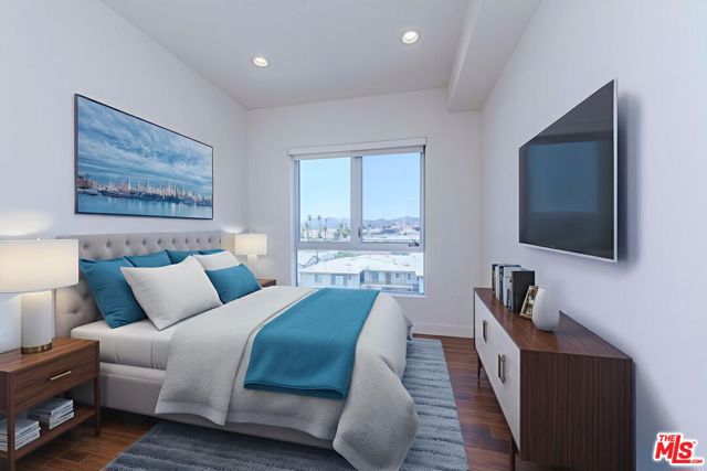 A contemporary oasis featuring sleek wood flooring, fresh paint, and elegant recessed lighting, this top-floor northeast corner unit offers high ceilings and breathtaking panoramic views of the DTLA skyline and Hollywood Hills. With no shared walls, it ensures unmatched privacy. The end unit also provides generous extra storage conveniently located right next to the residence and a bright, open layout.The modern kitchen boasts white cabinetry, stainless steel appliances, a gas range, bar seating, and abundant counter space. It seamlessly connects to the dining area and living room, which opens to a private balcony through a glass doorperfect for enjoying the views of palm trees and L.A.Built in 2017, Mari Villa offers two dedicated gated parking spaces equipped with a private EV charger connected to the unit's individual meter. Side By Side Parking. The charger is compatible with both NACS (Tesla) and standard non-Tesla connection incredibly valuable and rare feature in Koreatown, making it a huge asset for any EV owner. Water, gas, and electricity are all individually metered, giving residents full control over their utilities. The building also provides access to eight gated guest spots, and the HOA covers cable TV, high-speed internet, nightly security, trash, and building maintenance for a worry-free lifestyle. Ideally situated just minutes from Larchmont Village, Hancock Park, Hollywood, Downtown LA, and only a short drive to the 101 freeway, this refined residence embodies sophisticated living in the heart of Koreatown.