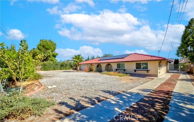 Don't miss your chance to own this stunning gorgeous Spanish home in the heart of Hesperia. Nestled in a quiet and friendly neighborhood. This home is deal for a big family and potential additional income from ADU. The entire house was renovated and ready to move in. A beautiful water proof laminate flooring all throughout, kitchen cabinets, Quartz countertop, and appliances, gorgeous bathroom with vanities and showers, very spacious bedroom and living room. Stepping outside to the backyard, you could enjoy the peaceful sunset having a BBQ party at the covered patio. 2 Sheds in backyard. Ample parking for many cars including 2 attached garages and RV parking at the backyard. 24 Solar panels so you'll enjoy lower electricity bills and sustainable living. Turn key and Much more.....