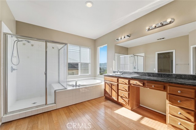 This beautifully designed 5-bedroom, 3-bathroom home offers 3,796 SF of spacious living on a 6,915 SF lot. Built in 2002, it features a chef’s kitchen with granite counter-tops and a large island, hardwood floors, soaring ceilings, a formal living room, and a family room with fireplace. The oversized primary suite includes an en-suite bath, walk-in closet, and private balcony. Enjoy the entertainer’s backyard complete with a covered patio, gazebo, and stunning views. Additional highlights include a formal dining area and 3-car attached garage. Conveniently located near parks, schools, shopping, dining, and the 14 freeway.