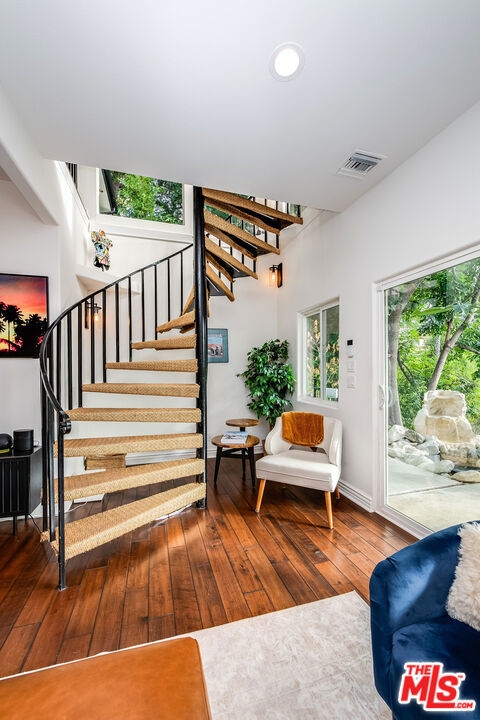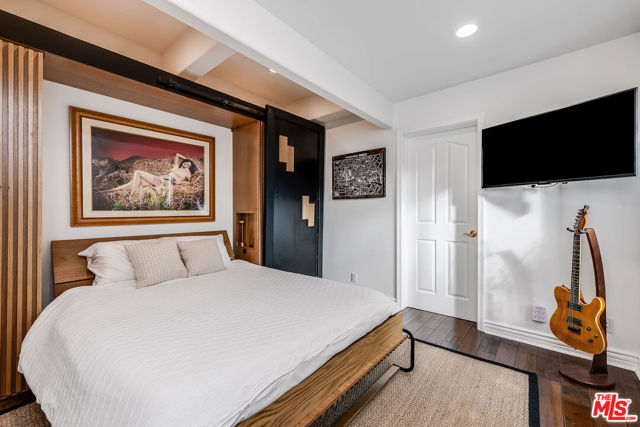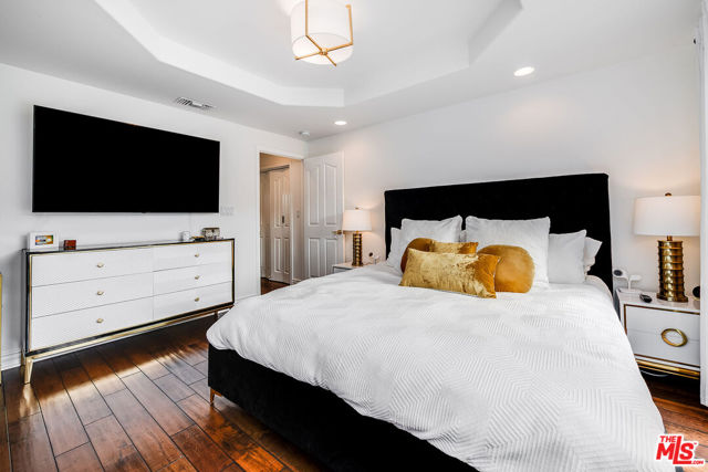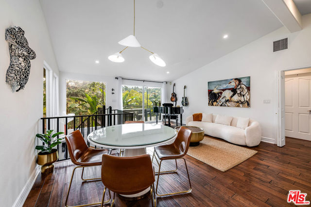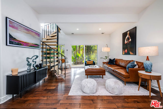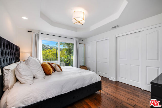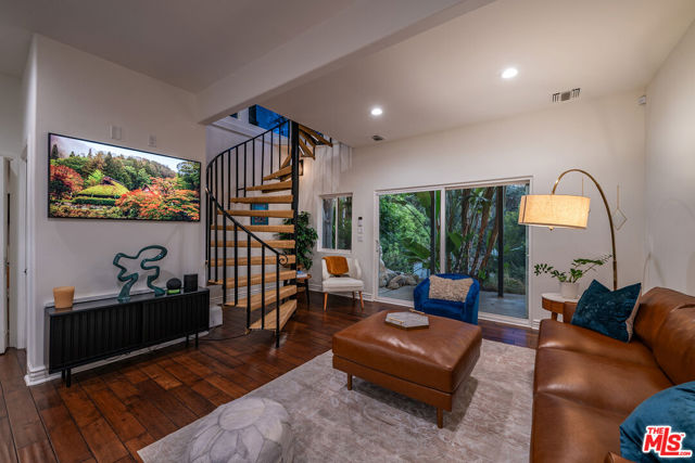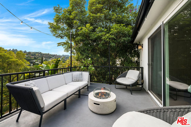 Tucked away in the desirable Lake Hollywood Knolls, this beautifully updated Hollywood Hills residence combines modern comfort with picturesque hillside views. Inside, rich hardwood floors, soaring ceilings, and an abundance of natural light create an inviting and elevated atmosphere. The open-concept chef's kitchen features new stainless steel appliances, a center island, and generous cabinetry ideal for both everyday living and entertaining. Spanning approximately 2,100 square feet, the flexible floor plan offers 4 bedrooms and 3 bathrooms, providing ample space to live, work, and unwind. The primary suite and main living area open onto a private balcony with sweeping mountain views, while the lower-level family room with its own bar, sink, and dishwasher flows seamlessly into a serene backyard oasis. Outside, enjoy a Zen fountain, built-in smoker, and BBQ perfect for relaxing or hosting guests. Additional highlights include custom closet systems, a spacious two-car attached garage with built-in cabinetry and overhead storage, smart home upgrades, an EV charger, and a new 2023 roof backed by a 15-year warranty. Gated for privacy and nestled on a quiet cul-de-sac, the property also features multiple outdoor living spaces designed for year-round enjoyment. Located just minutes from Hollywood, Studio City, Burbank, Downtown LA, and other top destinations, this tranquil retreat offers style, space, and exceptional access to the heart of Los Angeles.