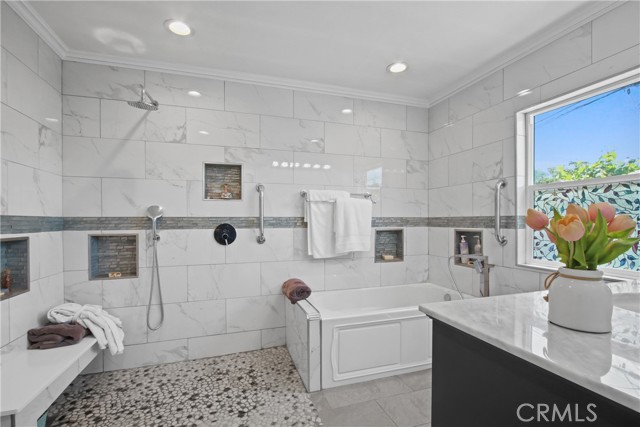 Style, space, and opportunity come together in this beautifully upgraded residence. Featuring 4 bedroom and 2 updated bathrooms, this home is designed for comfort and flexibility. The bright, open-concept kitchen showcases quartz countertops, custom cabinetry, a large pantry, and stainless steel appliances, including a vented stove, refrigerator, and dishwasher, all accented by a matching quartz backsplash. Recessed lighting throughout the kitchen and living room creates a warm, inviting ambiance, while central AC and heating ensure year-round comfort. The layout is perfect for a large household, two families, or added income potential, with two bedrooms and a private entry area ready to be converted into an ADU or guest suite. The primary bedroom offers a spacious retreat with a beautifully updated en-suite bathroom. Step outside to enjoy the private, expansive backyard—ideal for weekend BBQs, gatherings, or quiet relaxation. The two-car detached garage offers even more ADU potential, and the long driveway provides ample parking for multiple vehicles or an RV. Located in a quiet, welcoming neighborhood, this property is just minutes from top-rated schools, colleges, beaches, PCH, restaurants, shopping centers, and freeway access.Don’t miss this opportunity!