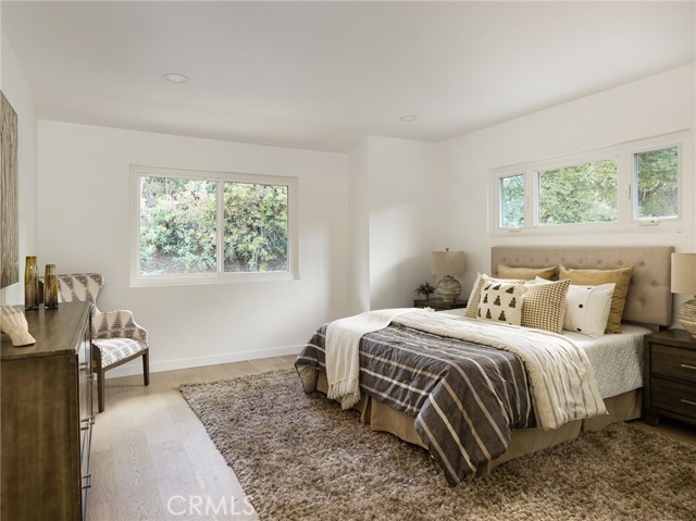 Perched above the street on a sprawling 19,927 sq. ft. lot, this fully remodeled single-level Hollywood Riviera home offers privacy, tranquility, and beautiful city lights & ocean views. A long private driveway leads to the residence, where you’ll enjoy peace of mind with no through traffic and exclusive access to the eucalyptus-lined Palos Verdes bridle trail. This 4-bedroom, 3.5-bath home has been thoughtfully reimagined with modern design and convenience. Three bedrooms feature en-suite baths, including two luxurious primary suites—each with its own stunning perspective, so you can choose which view to wake up to. The entertainer’s kitchen showcases a dramatic waterfall quartz island, custom cabinetry, and state-of-the-art Monogram appliances, all opening seamlessly to the living and dining spaces. White oak engineered floors run throughout, creating warmth and elegance at every turn. With over 2,550 sq. ft. of expansive, single-level living, the home’s interiors and outdoor spaces are designed to maximize the views and invite indoor-outdoor living while entertaining guests. Though tucked away in its own serene world, the property is just minutes from Riviera Elementary, Rocketship Park, and the boutiques and dining of Riviera Village. Come experience the rare blend of seclusion, sophistication, and sweeping views that make this one-of-a-kind Hollywood Riviera property so special.