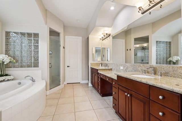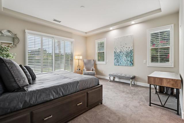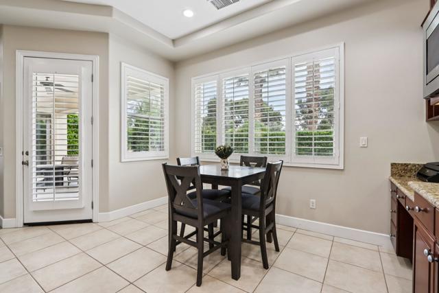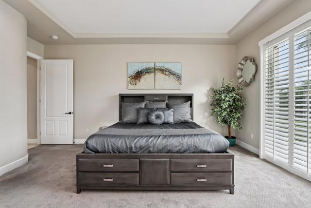 Elegant Contemporary Living in Brenna at Capri - Palm DesertWelcome to this beautifully maintained contemporary-style home in the prestigious gated community of Brenna at Capri, ideally located in the heart of Palm Desert. Enjoy the convenience of being within walking distance to Ronald Reagan Elementary School, Freedom Park, and just minutes from premier shopping, dining, and entertainment.Step inside to an open-concept layout featuring soaring ceilings and expansive windows that fill the space with natural light. Elegant plantation shutters and 24x24 white tile flooring throughout the main living areas enhance the modern aesthetic, creating a clean and sophisticated ambiance.The chef's kitchen is a true centerpiece, boasting stainless steel appliances, granite countertops, and a generous island that seamlessly connects to the spacious living and dining areas--perfect for entertaining or relaxing with family.Retreat to the luxurious primary suite, complete with a walk-in closet, dual vanities, a soaking tub, a spacious shower, and stunning marble countertops, for a truly spa-like experience.Additional highlights include:A large 2-car garage with an extended drivewayA dedicated laundry room with a deep sink and ample storageA private backyard oasis ideal for outdoor living, with space for dining, lounging, or creating your dream garden retreatThis elegant home blends contemporary design with everyday comfort in one of Palm Desert's most sought-after communities.Don't miss the opportunity to make it yours!