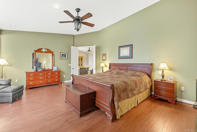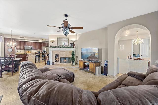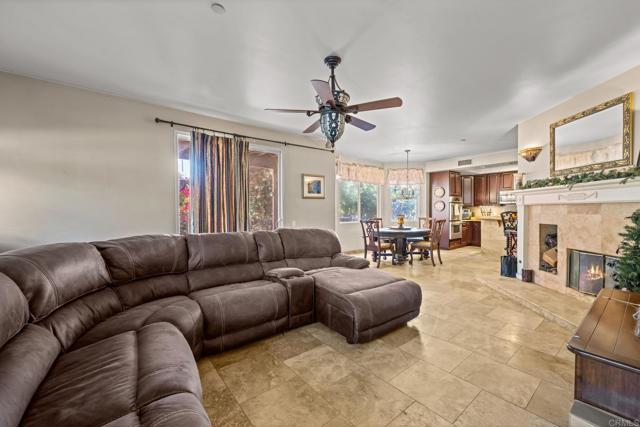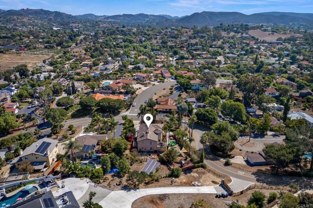 Spacious home on a large half-acre lot surrounded by sweeping mountain views! A long double driveway leads you to the entry, where soaring ceilings welcome you inside. The living room is warm and inviting with wood floors, a welcoming stone fireplace, and large windows that fill the space with natural light. From here, step into the dining room with travertine flooring and an elegant chandelier—perfect for gatherings. A versatile bonus room on the first floor makes an ideal playroom or home office. The heart of the home is the kitchen, featuring rich wood cabinetry, granite countertops, a walk-in pantry, double oven, and center island with bar seating. It connects seamlessly to a breakfast nook framed by bay windows and a spacious family room with a second fireplace and sliding doors to the backyard. Outside, the expansive lot offers a picnic area, firepit, and endless space for entertaining, gardening, and endless possibilities! A full bathroom is also located on the first floor, along with a full-size laundry room with plenty of storage and access to the oversized 4-car garage. Upstairs, a large skylit loft provides even more living space. The primary suite is a true retreat, complete with its own fireplace, sitting area, and a large private balcony to enjoy serene mountain views. The updated ensuite bathroom includes a soaking tub, walk-in shower, double sinks, and an enormous walk-in closet with boundless potential. Four additional large bedrooms and two more updated full bathrooms provide plenty of room for family and guests. Additional upgrades include custom ceiling fans, stylish light fixtures, and solar for energy efficiency. All in a great location close to schools, shopping, restaurants, and just 15 minutes from the beach!