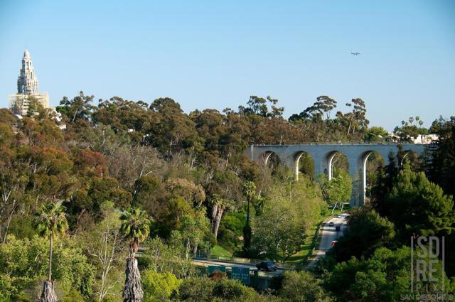 ***CORNER UNIT VIEWS INTO BALBOA PARK*** Very rare completely remodeled corner unit at Balboa Park. 2 bed 2 full bath condo with 2 car underground gated parking spots and extra storage. In unit laundry. Finishes include new windows, hard flooring, marble counters, butcher block kitchen island, custom white cabinetry, stainless steel appliances and new bathrooms. The condo is situated on Hawthorn and 6th Ave and the interior of the unit faces southeast directly into the park which allows for a nice greenbelt view but limits visibility inside the unit giving the interior a lot of light filled privacy. Parking is off street, gated, and in two separate assigned spots that are not tandem. Each parking space includes a small storage space for the condo. Walking distance to all of the amenities in Bankers Hill, close by downtown. Ideal location and rarely available.