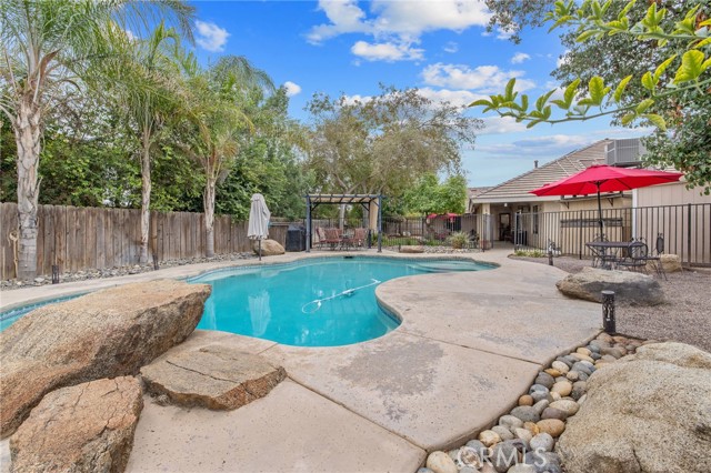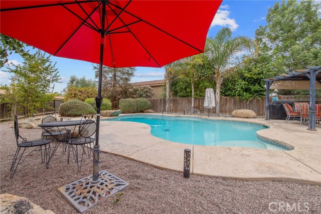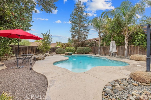 The Showpiece of Morningside Estates! Welcome to 594 Diana Ct, a stunning semi-custom home where resort living meets everyday convenience. This 4-bedroom, 3-bath property offers over 2,400 square feet of thoughtfully designed space, combining luxury, comfort, and functionality. Step inside to a grand great room with a wall of glass and an oversized slider, blending indoor and outdoor living spaces. The gourmet kitchen boasts double ovens, a gas cooktop, and seating for six at the bar, as well as dining for 8-10, making it ideal for entertaining. The primary suite is a true retreat, featuring a garden soaking tub, dual-head shower, custom walk-in closet, and a private slider that opens to a morning patio or a moonlit swim. A French-door flex room is ideal for use as a home office, gym, or reading lounge. This home is equipped with modern upgrades, including 49 solar panels, a newer HVAC system, a whole-house fan, a smart thermostat, a Ring doorbell, an ADT camera system, app-controlled sprinklers, and an insulated garage featuring custom cabinetry and a workbench. The backyard is your private resort. Enjoy the pool yard with pergola, deck, grape arbor, towering redwoods, and queen palms for a shaded afternoon retreat. The main yard features mature trees, a 12 x 13 pad for BBQs, and an expansive covered patio that nearly spans the length of the house. Additional spaces include an RV & kennel yard with secure gates, as well as a shop yard featuring two sheds for storage and projects. Located in a quiet, no-HOA cul-de-sac with top-rated Pioneer Elementary and Sierra Pacific High nearby, this home offers a welcoming community vibe with wide streets, a local dog park, and easy access to shopping, dining, Amtrak, HWY 43 & 198, and Fresno Yosemite Airport. Day trips to the coast, mountains, or wine country are just a drive away.