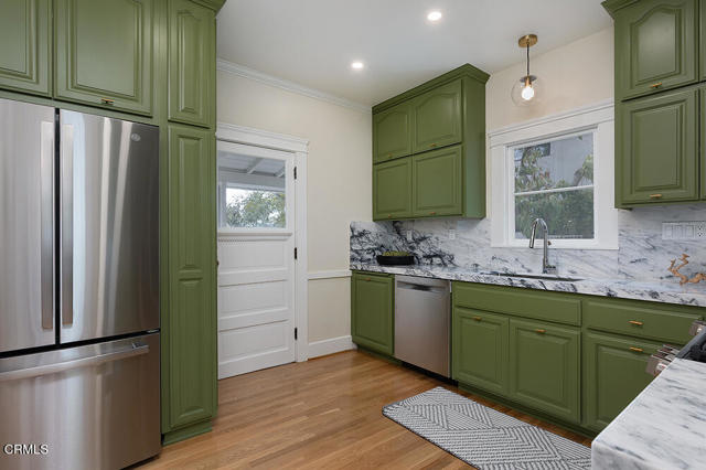 This classic 1910 Southern Georgian Colonial with 4 bedrooms and 2 bathrooms is a standout in Pasadena's northeast Jefferson Park, Pasadena Heights neighborhood. With hardwood floors throughout, the home boasts a welcoming formal entry area with an original two-sided staircase and unique banister beckoning you upstairs.To the entry's left a traditional living room with a large front window, fireplace and built-ins. To the right of the entry an oversized dining room with stately charm. Through the dining room discover a cheery green and recently updated kitchen with marble countertops and backsplash, stainless steel appliances and large under-mounted basin sink with ample lighting and a unique pass-through back to the dining room. Just off the kitchen a separate breakfast room with French doors provides an abundance of light and access to the backyard while also allowing you to round back to the living room or quickly upstairs. Beyond the kitchen and breakfast room find a secondary bathroom and laundry-mudroom combo.Upon ascending the stairs a large picture window greets you at the top with tranquil views of the backyard. Turn to discover an expansive second-floor landing with built-in bookcases. This mezzanine-like space could double as a den, library, office, retreat or media space. Off this bonus area find 4 bedrooms and an updated full bathroom--don't miss the amazing front balcony--an ideal place to enjoy morning coffee or evening cocktails while surveying community happenings from your high-up perch.The over 9,000 square foot lot offers a variety of fruit trees and garden areas--not to mention your own stoic redwood that you can admire from your front yard and porch.The home's attic and sizable basement with exterior access offers ample storage--along with an oversized two-car garage with front or rear alley entry--a rare feature for Pasadena homes.Own your own piece of Pasadena heritage in this incredible, fun and inviting neighborhood just moments from a variant of city and recreational activities. 1660 Las Lunas welcomes you home with every return.