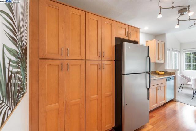 Are you a homeowner looking for turnkey luxury or a savvy investor seeking strong rental potential? Great value for Pleasanton! Welcome to this beautifully upgraded 2-bedroom, 2-bath condo in the highly sought-after Canyon Meadows community. This upper-level home offers a perfect blend of comfort, privacy, and modern style. Enjoy stunning views from the two balconies as well as from the living room, dining area, and both bedrooms — all framed by newer dual-pane windows (2021) that boost energy efficiency. Soaring vaulted ceilings and abundant natural light give the home an airy, open feel. The custom kitchen showcases natural maple cabinetry with pull-out drawers, modern appliances, and a sleek hands-free faucet. Primary suite includes a walk-in closet and a highly-upgraded spa bathroom. Second bath is also completely updated and includes modern glass vanity and mosaic tile trim. Recent improvements include a new HVAC system (2021), plush carpeting, fresh paint, new window coverings, and updated lighting and hardware throughout. Enjoy resort-style living with close access to tennis, basketball, and volleyball courts, pool and spa, clubhouse, and fitness center. Prime location near BART, 580/680, top-rated Pleasanton schools, shopping, and dining. Move in and pamper yourself!
