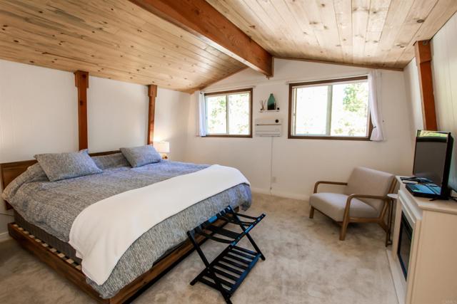 You’ll love this classic Gambrel home in the highly desirable 92314 zip code in Moonridge, near Fox Farm! Located on a quiet street with a large empty lot across the street. Conveniently near Bear Mountain, the golf course, Zoo, and the newly improved Moonridge corridor. It has stunning pine wood vaulted ceilings with appealing stained exposed beams throughout the home. Kitchen has a beautiful farmhouse sink and faucet, modern quartz countertops, and a rustic live-edge wooden breakfast bar. It is equipped with new appliances, including an added dishwasher. The tile backslash and open shelves provide a clean, modern look. The 1.5 car garage is currently used as a game room (7’ pool table with ping pong top, darts) and laundry room; potential to change to an ADU. The home features wood laminate flooring, new carpet upstairs, a brick gas fireplace, and six new electric heaters (bedrooms, garage, bathroom, in addition to the forced air heater downstairs.) A new tankless water heater in the garage has made available its closet by the front door… great for a cleaner’s or coat closet! The home has all new furniture included, providing for a turnkey short-term rental or family vacation home! Its large deck starts as you walk up to the front door, and wraps around to the backyard for your own mountain Oasis! Enjoy the large pine and oak trees surrounding the property, as you relax in the hot tub and stargaze. Complete with outdoor shed for tools, snow shovel, etc. Bistro lights surround deck walkway as well as pergola over hot tub – including outdoor table and patio chair set. Home is equipped and monitored with full ADT security system – Five cameras with a wall unit control center and kitchen display. 2 nest smart locks on front and garage doors… Lets unlock the door to your dream home!