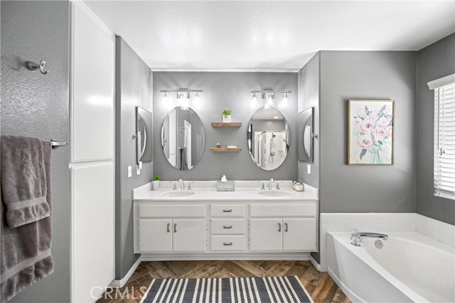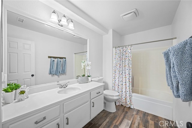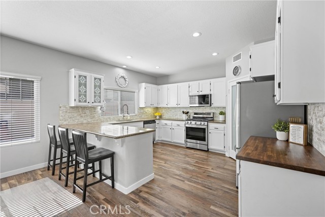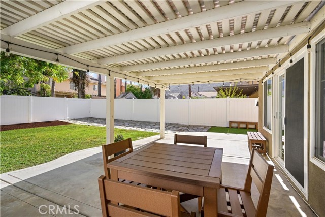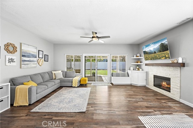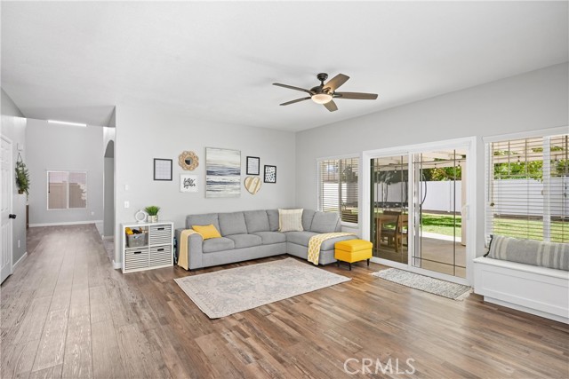 Welcome to this beautifully maintained 4-bedroom, 2.5-bath home offering 2,632 sqft of well-designed living space. Situated on a spacious interior lot within the Hidden Creek community in Wildomar, this home combines functionality, style, and efficiency. A charming covered porch and elegant glass-paneled entry lead into a tastefully designed interior brimming with natural light, soaring ceilings, and an open floor plan. The updated kitchen features modern appliances, designer touches, and a direct flow to the family room, making it perfect for both entertaining and everyday living. A custom stone fireplace and built-in cabinetry add warmth and character to the main level. Enjoy comfort year-round with energy-efficient solar panels, newer vinyl double-pane windows upstairs, a whole-house fan, and a tankless water heater. The exterior impresses with a widened driveway offering a 3-car garage with epoxy flooring, RV parking, and a covered patio that opens to a tastefully arranged backyard ideal for gatherings and outdoor dining. Thoughtful upgrades include a water drainage system for optimal yard care and low-maintenance living. Set on a generous 7,405 sqft lot with no HOA, this home offers the perfect balance of modern upgrades, energy-conscious features, and convenience.