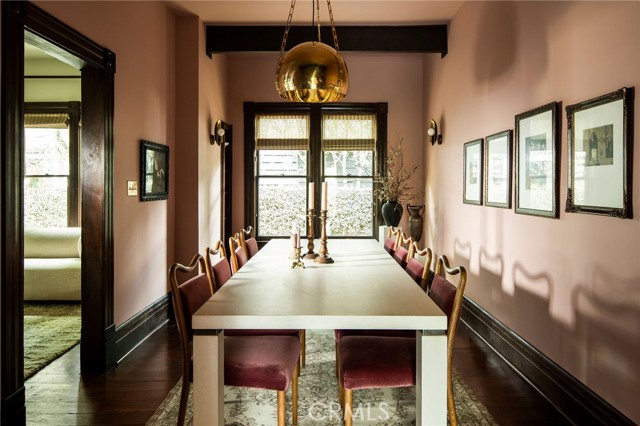 Step into Pasadena’s rich history with this beautifully restored Queen Anne Victorian, perfectly situated on a tree-lined street in the Raymond-Esther Landmark District. This home has been cared for with exceptional attention to detail, preserving its timeless character and charm. From its exquisite and extensive millwork to its gorgeous stained and leaded-glass windows and expansive backyard, it’s hard not to be captivated by the magic of this rare property. With 3 bedrooms, 2 bathrooms, and 2,187 square feet, the layout offers generous space for daily life. The floor plan flows gracefully from room to room, creating a sense of openness while still maintaining the cozy intimacy that makes these older homes so beloved. Each space has its own personality—from the sunlit kitchen that invites morning coffee and conversation to the formal dining room, perfect for big family gatherings, to the adjacent living room adorned with rich wood and a welcoming fireplace—you’ll never be stuck in the same attitude. All of this comes with thoughtful modern upgrades, including dual-zone air conditioning, a gas fireplace, and kitchen skylights that fill the space with natural light. The outdoor space is equally special, offering both beauty and functionality. The expansive, tree-shaded yard provides a serene escape—perfect for quiet mornings, playful afternoons, or lively evening gatherings with friends and family. The lush landscaping and mature trees create a sense of privacy and tranquility rarely found in the city. At the back of the property, the charming, shingled storybook garage is extremely spacious and offers endless possibilities. Located just minutes from the Rose Bowl, Old Town Pasadena and the iconic Gamble House, this is more than just a home; it’s a piece of Pasadena’s story, lovingly preserved and ready for its next chapter. Don’t miss the chance to make it your own.