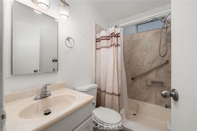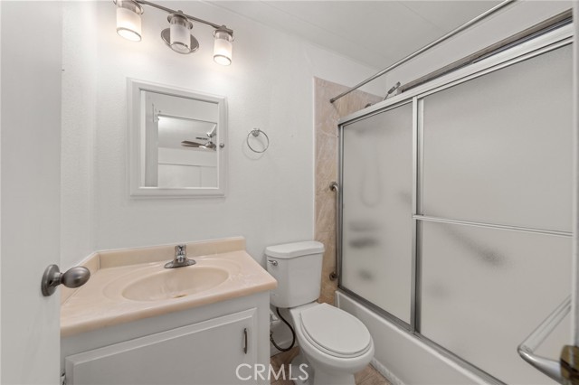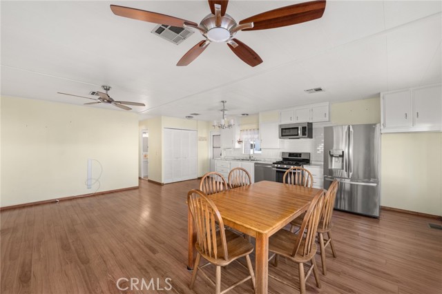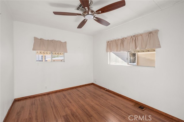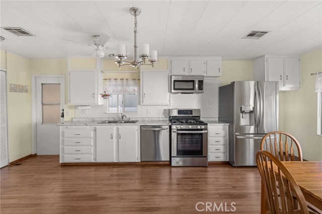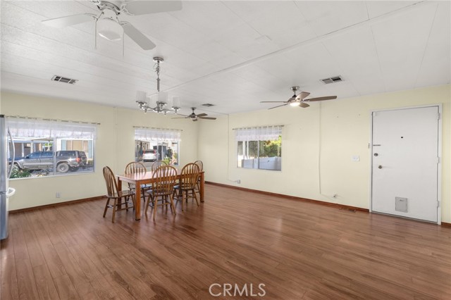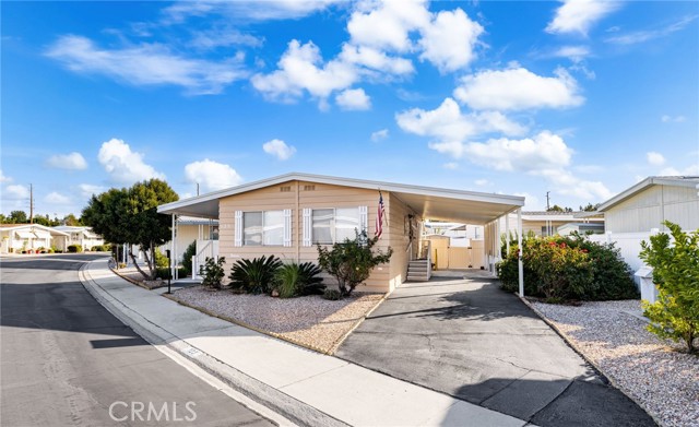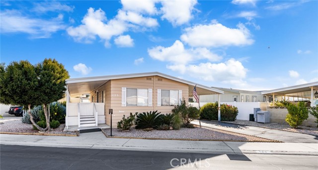 Clean and affordable manufactured home in the sought after Lugonia Fountains 55+ community with all appliances included! Move right into this low maintenance two bedroom, two bathroom home. Excellent location, just down the street from Stater Bros Grocery store and a short drive to Downtown Redlands dining and shopping. You're greeted by a manicured and drought tolerant front yard. The spacious front room with an open kitchen can be accessed either via your private, gated and covered patio, or via ramp access from the tandem carport. Inside, you'll find the updated kitchen with white cabinets, solid surface counters, a beautiful subway backsplash, and stainless appliances - including a gas range and the french door refrigerator. Solid surface wood look flooring brings you to the two bedrooms, two bathrooms, and indoor laundry. One of the bathrooms features a walk in shower with a grab bar for greater accessibility. The private backyard features a covered concrete patio, low maintenance vinyl fencing, and a storage shed. Residents of Lugonia Fountains have access to amenities like the pool and clubhouse.