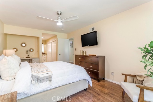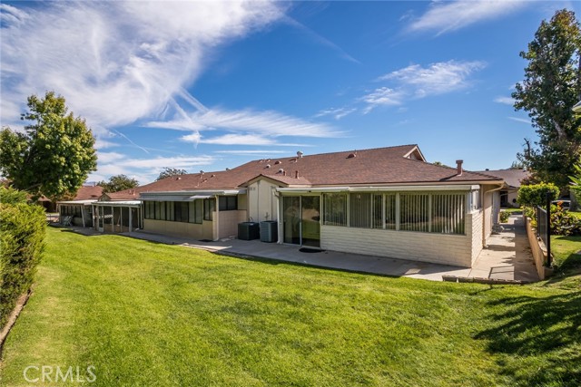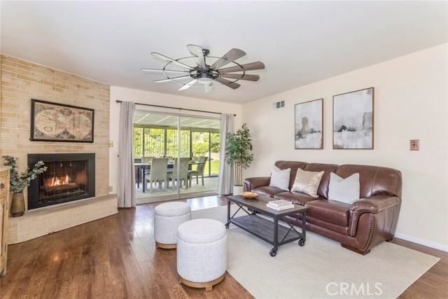 Welcome Home to Easy Living in a Vibrant 55+ Community! Step into this inviting end-unit condo through a charming pebbled front porch and discover the perfect blend of comfort and convenience. Inside, you'll find stylish tile and wood-look laminate flooring, plus ceiling fans in every main room for year-round comfort. The bright, well-equipped kitchen offers plenty of cabinet space, a beautiful tile backsplash, and a cheerful window over the sink that brings in natural light. All newer, matching appliances are included, even the recently purchased smart refrigerator and washer and dryer set. The open-concept living area features a cozy gas fireplace and a sliding glass door leading to the enclosed patio, ideal for relaxing mornings or evening get-togethers overlooking the semi-private backyard. The spacious primary suite is your peaceful retreat, featuring a dressing area, double closets and direct access to the enclosed patio. The front bedroom is perfect for guests, office or hobbies, with a nearby hallway bath boasting a walk-in jetted tub for those with mobility concerns, and custom cabinetry with display shelving. All this in a beautifully maintained, gated 55+ community offering endless ways to stay active and connected. Enjoy a recently refurbished pool and hot tub (2023), auditorium, clubhouse, exercise room, game room, wood working, ceramics, shuffleboard, horseshoe court, basketball, picnic, BBQ's, lawn bowling - plus two golf courses! The HOA covers trash, sewer, building and roof, landscaping/gardener, special cable TV offer, insurance and more! Gated entry with guard and patrols 24/7/365.