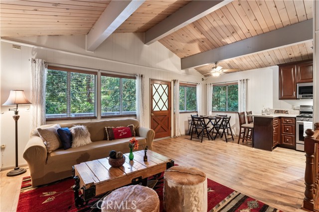 Charming Mountain Retreat Near Lake Gregory Discover this inviting 3-bedroom, 2-bath home with a 2-car garage, nestled in a peaceful, forested setting among towering cedars, pines, and oaks. Enjoy the soothing sound of a nearly year-round stream just across the street, creating a serene mountain ambiance. Inside, you’ll find beautiful open-beam ceilings, an open floor plan, and a granite kitchen perfect for entertaining or everyday living. The living room features a classic brick fireplace framed by built-in bookcases, adding warmth and character. Large windows offer treehouse-like views, where you can often watch deer and other wildlife right from your backyard. A spacious primary bedroom is a retreat on its own, with direct deck access to the east-facing skyline, to enjoy the musical sounds of Dart Creek. Located within walking distance to Lake Gregory, you’ll have easy access to fishing, boating, swimming, and beach activities. The home sits in a quiet, small-town community that’s commuter-friendly, with roads that are first plowed and plowed often in winter for reliable year-round access. Only 75–90 minutes from Orange and Los Angeles Counties and about 2 hours from San Diego, this home offers the perfect blend of mountain tranquility and modern convenience — truly paradise at your doorstep.