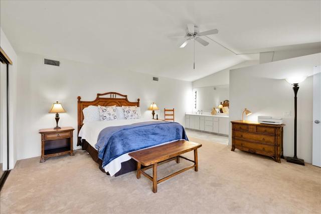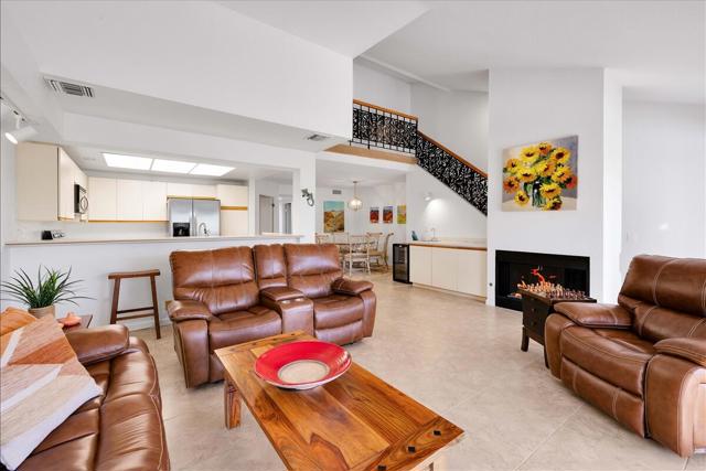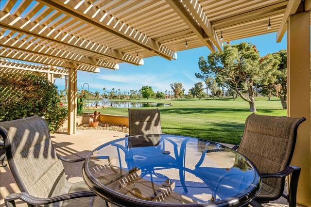 Welcome to 77689 Woodhaven N., an impeccably maintained 3-bedroom, 3-bath home in one of the best locations within the desirable Woodhaven Country Club. Offering exceptional privacy and breathtaking views of the golf course, tranquil water feature, mature trees, and the Santa Rosa Mountains, this home is truly special. Inside, you'll find a thoughtfully designed layout featuring an inviting atrium with a soothing water feature and dual primary suites, each with an en suite bath. The upstairs primary suite includes a private balcony deck--perfect for enjoying the stunning surroundings. Recent upgrades include new tile floors (2019), an Alumawood pergola (2022), a new AC unit (2022), and a brand-new dishwasher (2025). This home is being sold fully furnished, including art and accessories. Woodhaven Country Club is a sought-after community offering an 18-hole golf course, tennis and pickleball courts, a fitness center, and a clubhouse with a restaurant and lounge. The HOA covers cable TV, internet, trash, a security gate, four pools (heated in winter), and four spas, with social membership included. Residents are offered discounts on golf memberships. Don't miss this rare opportunity to own one of the best-located homes in Woodhaven--schedule your private tour today!
