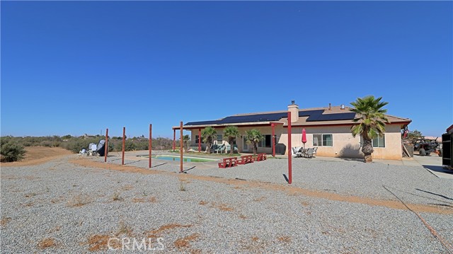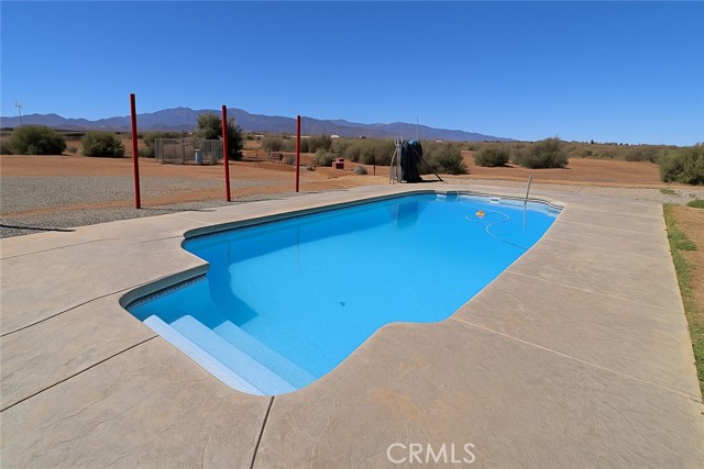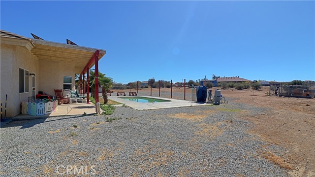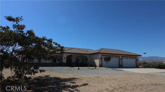 Beautiful Modern Ranch Home with Pool & Mountain Views on 2+ Acres. Welcome to this spacious 5-bedroom, 3-bath single-story home offering 2,462 sq. ft. of living space on over 2 acres of open High Desert land. Built in 2006 with modern style and comfort in mind, this property blends rural privacy with convenient amenities. Step inside to find an inviting open floor plan with high ceilings, tile and wood flooring, and a cozy wood-burning stove that anchors the family room. Large picture windows fill the living spaces with natural light and capture peaceful desert and mountain views. The chef’s kitchen features dark cabinetry, granite countertops, double ovens, and ample counter space—perfect for preparing meals and entertaining guests. A formal dining area sits just off the entry, ideal for family gatherings or dinner parties. The home offers five spacious bedrooms, including a well-appointed primary suite with plenty of natural light and space to relax. Three full bathrooms provide convenience for family and guests alike. Outside, you’ll find room to roam on 2.15 acres, including a private in-ground pool for cooling off on summer days, and a 4-car attached garage providing plenty of space for vehicles, storage, or workshop use. With tile roofing, central heat and A/C, and a modern frame construction, this home is designed for comfort and durability. Enjoy quiet desert living with easy access to nearby highways, shopping, and schools. Whether you’re seeking a peaceful retreat, space for your toys, or a property with room to grow, this home has it all.