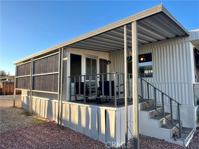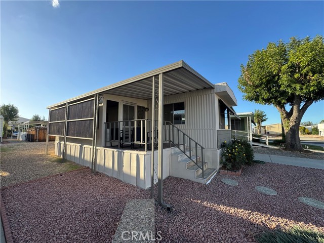 Welcome to this charming single-wide mobile home in the 55+ Sun City Mobile Home Estates! This thoughtfully updated 1 bedroom, 1 bathroom home, built in 1978, has been completely refreshed and is move-in ready. Step inside to discover fresh paint throughout both the interior and exterior, creating a clean and inviting atmosphere. Brand new luxury vinyl plank flooring flows seamlessly through the entire home, including the sunroom, providing a modern and cohesive look. The kitchen has been tastefully updated with new countertops and sink, making meal preparation a pleasure. The bathroom has been completely remodeled with a new shower, toilet, vanity, and water fixtures. Outside, you'll find a convenient carport for covered parking and a practical work shed for additional storage or your hobbies and projects. The refrigerator and stackable washer are included, so you can move in without the hassle of purchasing major appliances. Enjoy the fantastic clubhouse featuring a swimming pool, spa, and gym. Weekly activities provide endless opportunities to socialize and stay active with your neighbors. Location is everything, and this home delivers! You're close to shopping centers, restaurants, churches, and a beautiful golf course. Easy freeway access makes commuting or visiting family and friends a breeze. This home combines modern updates with the convenience of Menifee's unbeatable amenities and prime location. At this price point, opportunities like this don't last long in today's market.
