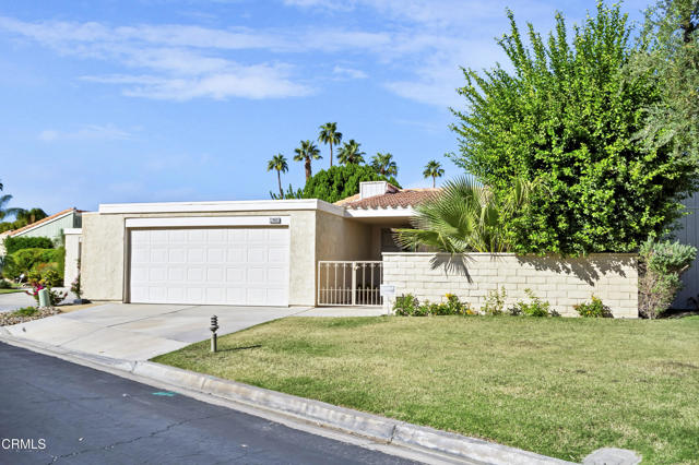 Tucked behind the gates of Wilshire Palms, this 2 BR / 2 BA / 2 car garage desert hideaway captures the timeless spirit of Rancho Mirage living, where privacy, leisure, and sunshine have drawn artists, visionaries, and presidents for decades. Here, desert modernism meets resort relaxation in a setting that feels both sophisticated and effortless. Beyond the graceful double-door entry, the home unfolds into 1,851 square feet of open living space, filled with natural light and framed by lush greenbelts. The spacious living and dining areas flow together beautifully, centered around a classic wet bar--the perfect spot to toast a desert sunset. With two large bedrooms, two elegant baths, and a large sunny office area that is ideal for a work-from-home space, studio, or library, there's room to work, unwind, and entertain in style. The private two-car garage and single-level layout make daily life both easy and refined. Inside Wilshire Palms, you'll find the quiet luxury that defines this community: sparkling pools and spas, lighted tennis and pickleball courts, and expansive lawns dotted with mature palms and mountain views in every direction. Step outside the gates and the best of Rancho Mirage surrounds you--Sunnylands Center & Gardens, Desert Island Golf & Country Club, The River with its shops and cafes, and a legacy of desert living that began when stars and statesmen discovered this oasis in the 1950s. Here, life slows down just enough to enjoy it all. A home that feels like a retreat, in a city built on grace, sunshine, and possibility. Request your private tour today!