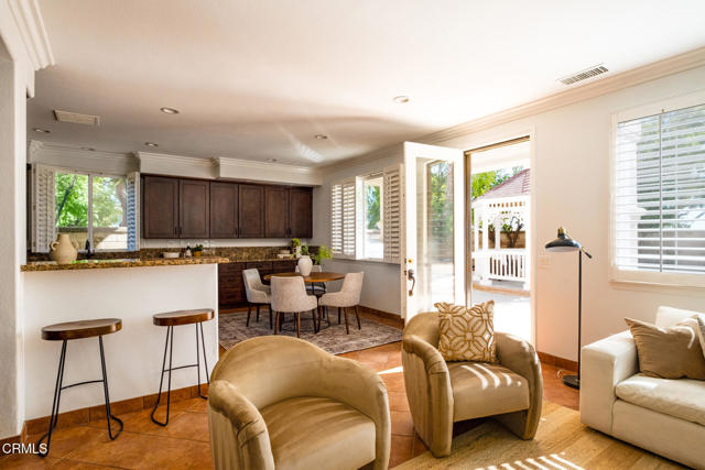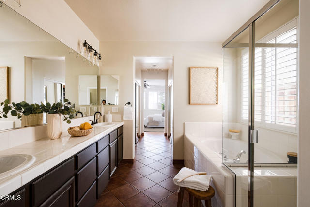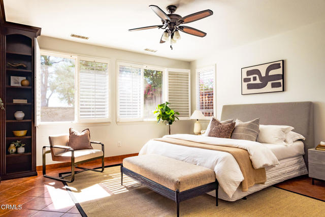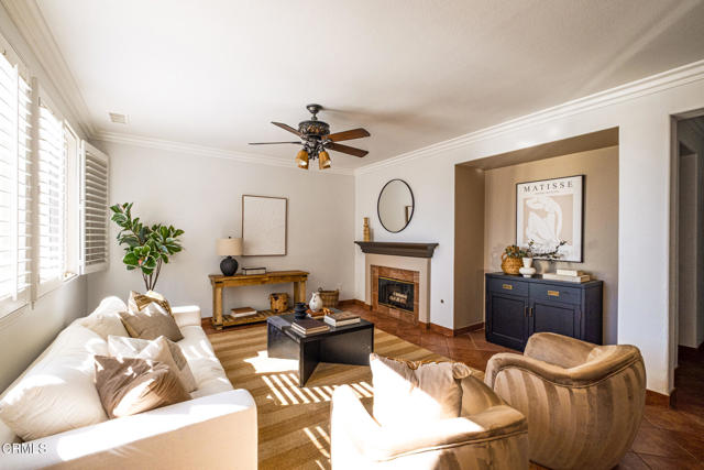 Welcome to this beautifully maintained four-bedroom, three-bath Spanish-style home nestled in a desirable neighborhood that exudes pride of ownership. Thoughtfully designed for comfort and convenience, this residence offers a spacious floor plan with the primary suite conveniently located on the first floor.Step through the formal entry into a bright and inviting living room with soaring ceilings and abundant natural light. The kitchen opens to the family room with a fireplace. The downstairs primary suite offers a spacious retreat has 2 generously sized closets, and a large en suite bathroom, dual vanities, a separate shower and tub. Upstairs, you'll find three additional bedrooms, one with a private balcony, one full bath, and a dedicated office space with built-ins perfect for working from home.The oversized garage provides direct home access and exceptional storage space, while the separate laundry room adds to the home's functionality, complete with a utility sink and lots of storage. Step out to a fully landscaped backyard featuring a patio, an outdoor kitchen, and a gazebo ideal for entertaining.Additional highlights include tile flooring throughout, plantation shutters, a tankless water heater, a dual air conditioning system, a water softening/filtration system, and fresh interior paint. Located near shops, restaurants, and conveniences, this home combines elegance, practicality, and location in one perfect package.