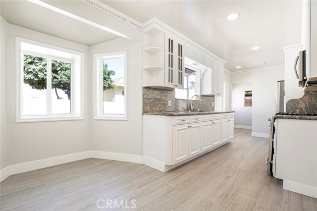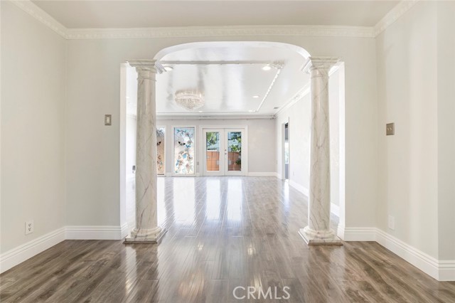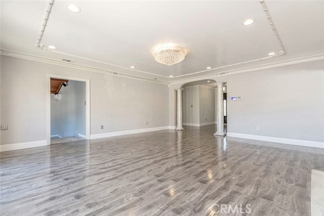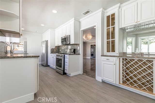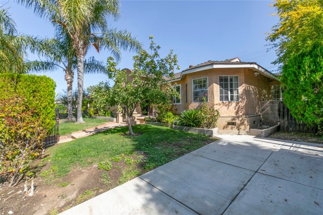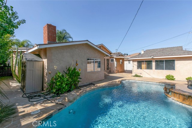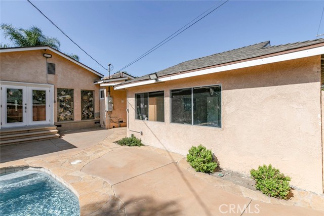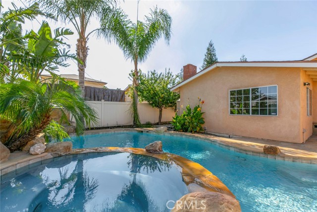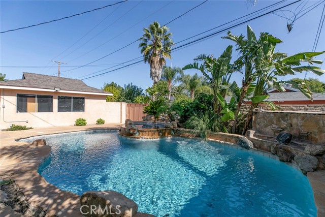 Welcome to Your Private Oasis! This stunning home truly has it all — a sparkling aqua-blue pool and Jacuzzi, elegant Venetian plaster finishes, and a remodeled kitchen and bathroom designed for modern living. Beautiful palm trees frame the front yard, giving the property amazing curb appeal. A 1-car driveway complements the detached 2-car garage with alley access — perfect for parking or a potential ADU conversion. Step through the grand double-door entrance into a space that exudes luxury and comfort. The main living room features laminate flooring, a custom fireplace with detailed moldings, recessed lighting, a glass chandelier, and intricate ceiling designs. The second living area, ideal as a family or entertainment room, showcases custom tile work, high ceilings, and exposed wood beams, adding warmth and character. The remodeled kitchen is a chef’s dream — complete with granite countertops, stainless steel appliances, a built-in wine rack, kitchen features space to covert into a cozy breakfast nook perfect for morning coffee. Washer and dryer are included for your convenience. Bathrooms are tastefully updated with high ceilings, modern tile work, and elegant finishes. Ample storage, including walk-in closets, ensures functionality throughout. French doors with stained-glass accents lead you to your private backyard retreat, where you’ll find a resort-style pool and Jacuzzi surrounded by multiple water features — the perfect setting for relaxing evenings or unforgettable gatherings. With its luxurious upgrades, thoughtful design, and ADU potential, this home offers a rare combination of beauty, comfort, and investment opportunity.