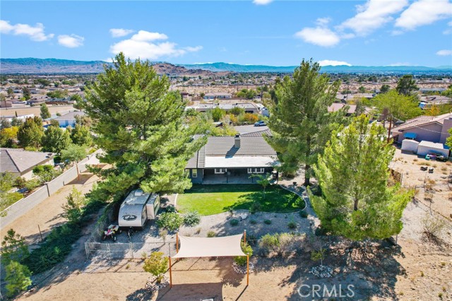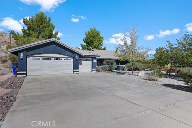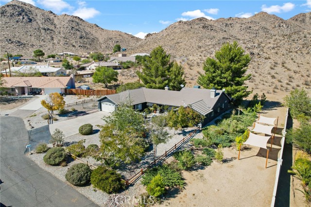 Discover desert living at its finest with this beautifully maintained single-story retreat nestled in the highly sought-after Sycamore Rocks neighborhood of Apple Valley. Situated on an expansive 28,900 square foot lot, this 4-bedroom, 2-bath home offers space, privacy, and timeless charm surrounded by breathtaking mountain views. From the moment you arrive, the home’s inviting curb appeal and tranquil setting set the tone for what’s inside. The exterior features modern dark tones accented by light stone details, a large three-car garage, and a spacious driveway perfect for guests, RVs, or recreational vehicles. Step through the front door and you’re greeted by vaulted ceilings, abundant natural light, and an open layout designed for both everyday living and entertaining. The living room is warm and welcoming, anchored by a beautiful fireplace and custom built-in shelving—an ideal place to gather on cool desert evenings. Adjacent is the dining area and a thoughtfully designed kitchen that combines style and functionality. With rich wood cabinetry, sleek black granite-style countertops, and stainless steel appliances, the kitchen offers ample space for preparing meals and hosting family gatherings. A decorative stained-glass pendant adds a touch of character to the open space. The primary suite is a true retreat, featuring soaring ceilings, soft natural light, and generous room for a king-sized bed and sitting area. The adjoining bathroom offers comfort and convenience, while the additional bedrooms provide flexibility for guests, a home office, or creative spaces. Step outside to a backyard oasis surrounded by mature trees and peaceful desert landscaping. Enjoy shaded afternoons under the covered patio or unwind while taking in the serene views of the surrounding hills. The large, level backyard transitions seamlessly into open desert terrain, offering plenty of space for a pool, garden, or future ADU. Whether you envision family gatherings, outdoor entertaining, or quiet evenings under the stars, this property delivers endless possibilities. Located in a quiet cul-de-sac with minimal traffic, this home combines the privacy of country living with easy access to shopping, schools, parks, and local hiking trails. 20058 Rancherias Lane is more than a home—it’s a lifestyle of tranquility, space, and natural beauty in one of Apple Valley’s most desirable communities.