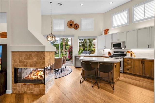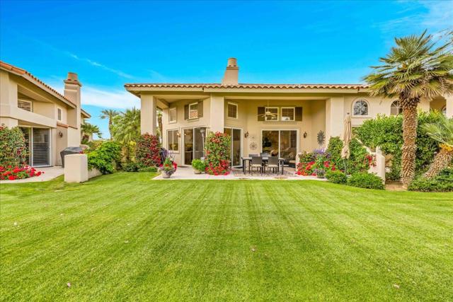 Experience the ultimate lock-and-leave lifestyle in this impeccably maintained and updated 2-bedroom, 2.5-bath Casita at Rancho La Quinta Country Club, ideally positioned moments from world-class amenities. The refined interior features high ceilings, premium Luxury Vinyl Plank flooring, and a gourmet kitchen boasting two-toned Shaker cabinetry and sleek Quartz countertops. The great room offers a captivating, Southern-facing vista that sweeps over the lush greenbelt, the manicured croquet lawn, and perfectly frames the Santa Rosa Mountains. The Primary Suite is a private haven with an updated en-suite bath and custom built-in closet, complemented by a spacious guest suite with its own bath. The highly anticipated remodeled Clubhouse, scheduled to debut mid-season 2026. Convenience is paramount with a dedicated laundry area and Social/Sports Membership included in HOA Dues. Furnishings may be available separately, ensuring a seamless transition to your effortlessly distinguished Rancho La Quinta lifestyle.