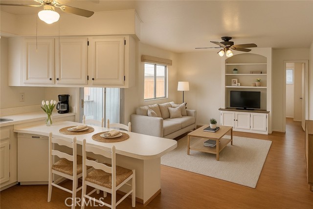 Welcome to Lugonia Fountains Mobile Estates, a beautifully maintained 55+ community. This spacious 2-bedroom, 2-bath manufactured home offers 1,440 sq. ft. of comfortable living with an inviting open floor plan that’s perfect for relaxing or entertaining. Inside, you’ll find a bright and airy living room, a formal dining area with a built in hutch, and a well-appointed kitchen with plenty of counter space, a convenient breakfast bar with seating and abundant cabinetry for all your storage needs. The primary suite features a private bath and generous closet space, while the second bedroom is ideal for guests or a home office with an attached bathroom. Step outside to enjoy your covered patio, a perfect spot for morning coffee or evening breezes. Additional highlights includes new window screens throughout, a convenient ADA-accessible ramp, covered parking, a storage shed, and central heating and air conditioning for year-round comfort. Residents of Lugonia Fountains enjoy access to exceptional community amenities, including a sparkling outdoor pool, indoor spa, pool table, game room, event room, and full kitchen—ideal for social gatherings and community events. The park is conveniently located near shopping, dining, and medical services, offering everything you need just minutes from your doorstep. Experience easy living in a friendly, active senior community.