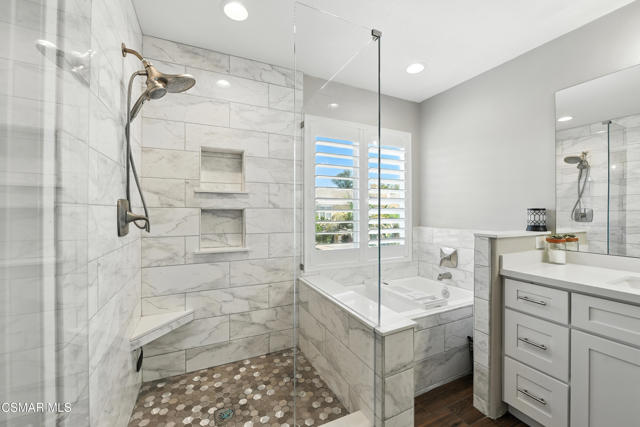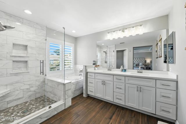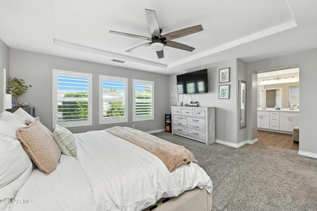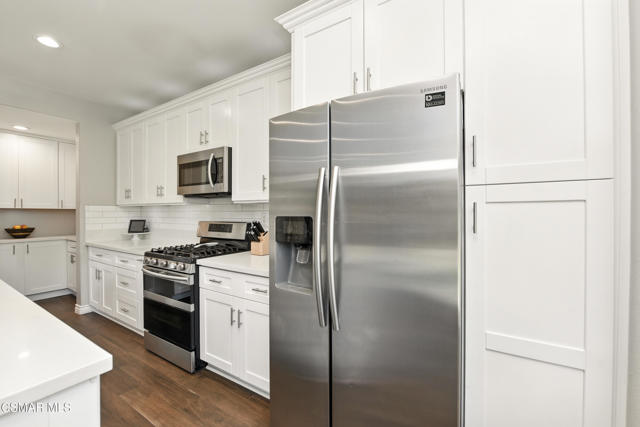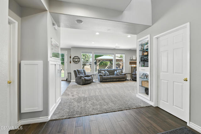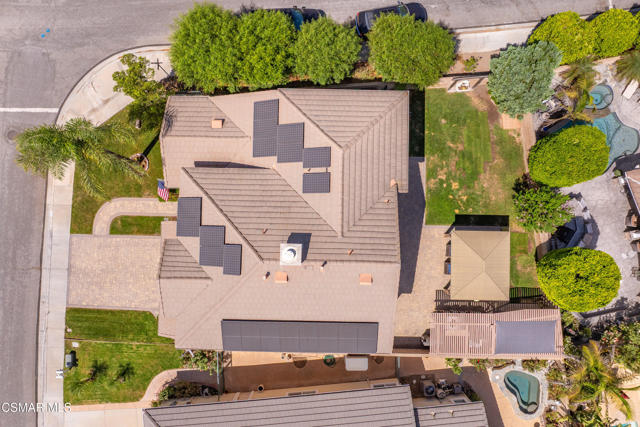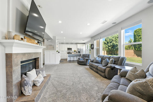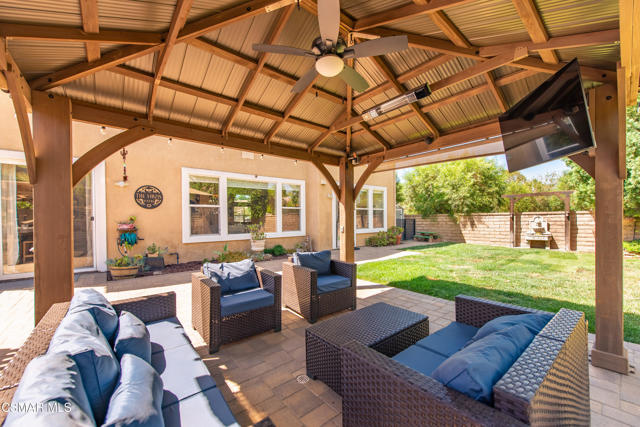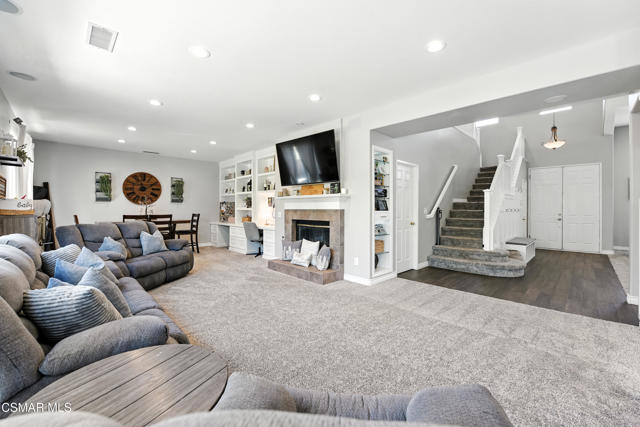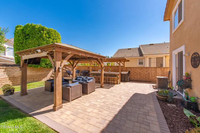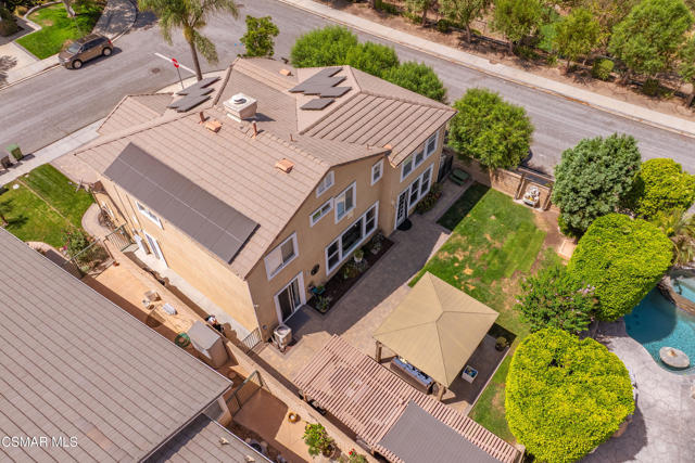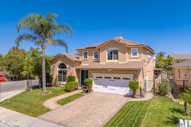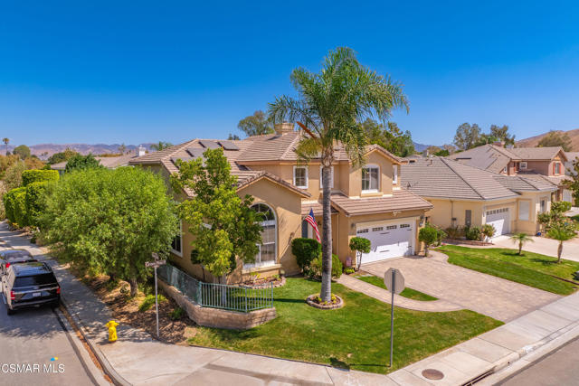 Welcome Home... 3453 Green Pine is a beautiful 4 bedroom, 3 bath, 2644 sq.ft. corner lot home in Simi Valley.This home has so much to offer. As you walk in, you'll be impressed by the spacious formal living and dining areas, which are perfect for entertaining. The beautiful flooring leads you to an incredible kitchen featuring custom cabinetry, quartz countertops, stainless steel appliances, an eat-at island, and a custom walk-in pantry. The family spaces are designed for more informal, intimate dining and relaxing by the fireplace. Additionally, there is an amazing built-in desk area that is ideal for students or those working from home. You'll also enjoy a fabulous view of and access to the entertainer's backyard, which includes paver patios, a built-in barbecue dining area, a fire pit, a gazebo with electrical, heat and ceiling fan, a large grass area, and more. Downstairs, you will find a lovely powder room and a laundry room leading to the spacious garage, which has ample built-in storage and plenty of room for parking. Upstairs, the main suite features a large walk-in closet and a customized ensuite bath. There are three spacious secondary bedrooms, each with plenty of storage, along with a large hall closet and an upgraded guest bath with a dual sink vanity. The home boasts high ceilings, an abundance of recessed and task lighting, decorative lighting, and numerous windows, all of which contribute to a beautiful, light-filled atmosphere. The thoughtful layout and custom closets emphasize both storage and functionality. Additionally, the home is energy-efficient, equipped with 20 paid-off solar panels and a Tesla Powerwall 3 (whole house battery pack), which has provided power for days, even when neighbors were without electricity. There is so much more to this wonderful home than can be listed here; a visit is truly necessary to appreciate its full potential. Nestled in the foothills of Simi Valley, this residence is part of the highly desirable Madison County development. It is situated on a spacious corner lot near the park and the Arroyo Greenway, along with various riding, hiking, and walking trails. This home is not just a place to live; it's an opportunity you won't want to miss.