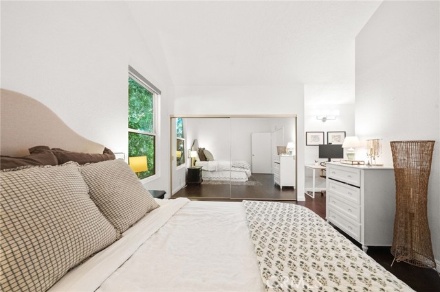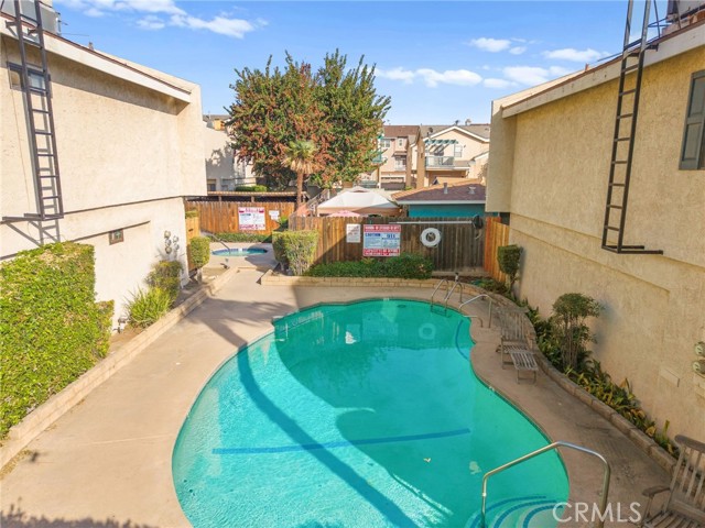 This bright, beautiful end-unit home is completely move-in ready and perfectly positioned for your vibrant Monrovia lifestyle. Step inside to a sunny, spacious living room, perfect for hosting with its convenient built-in wet bar. Beyond the living area, you'll find the updated guest powder room, and a roomy, refreshed kitchen flowing seamlessly into a dining area that opens to your own peaceful, tree-shaded patio—ideal for morning coffee or unwinding in the evenings. The second-floor features two generous bedrooms with vaulted ceilings and abundant closet space, in addition to a full bathroom. The attached garage provides the convenience of covered parking and the practicality of a washer and dryer, along with plenty of storage space. Fresh paint, beautiful flooring throughout, and newer dual-pane windows complete this turn-key space. Just steps from the door awaits the sparkling community pool and spa. With the perfect blend of comfort and charm, all while being minutes from the wonderful shops, delicious restaurants, and fun events of Old Town Monrovia, along with easy access to freeways and the Metro Gold Line, this is the perfect place for you to call home!