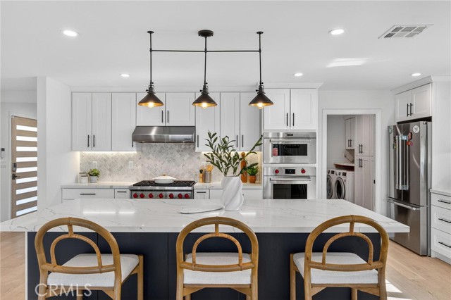 Discover the perfect blend of comfort, style, and coastal elegance in this beautifully reimagined single-level home in Rancho Palos Verdes’ desirable Los Verdes neighborhood. Extensively remodeled in 2020 and set on a 9,000+ sq. ft. lot, this 5-bedroom, 2.5-bath residence combines modern design with everyday comfort. Natural light fills the open floor plan through floor-to-ceiling sliders that showcase ocean and sunset views. The updated kitchen features a large center island, Wolf appliances, and abundant cabinetry, opening seamlessly to the dining and family areas, perfect for hosting gatherings or enjoying family time. The primary suite enjoys peaceful ocean views and opens directly to the backyard through a sliding door, complete with an en-suite bath. Outside, the thoughtfully designed landscaping enhances curb appeal, while the backyard and spacious patio provide a private retreat ideal for al fresco dining, play, and relaxation under the coastal sky. Additional highlights include a newer roof, upgraded electrical panel, dual-pane windows, a dedicated laundry room, updated main sewer line, and direct garage access. Conveniently located near award-winning Vista Grande Elementary, scenic trails, shopping, and beaches—this home captures the essence of the Palos Verdes coastal lifestyle.