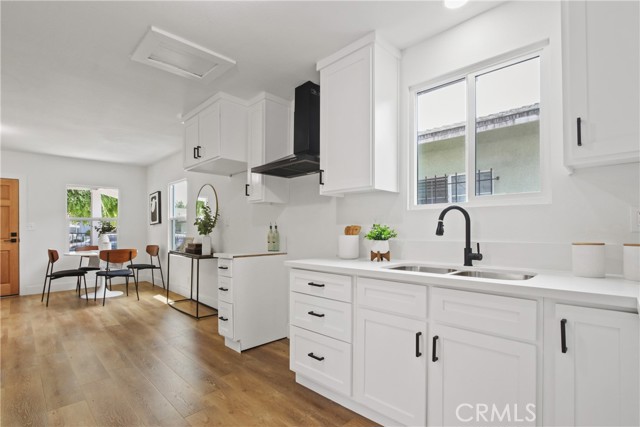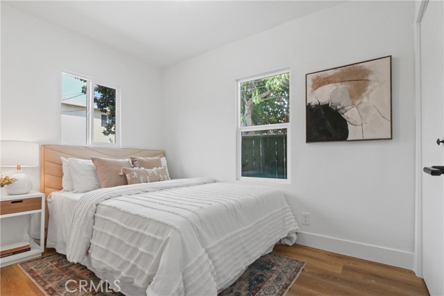 Sharp and newly remodeled 2bd/1ba single family residence located on a terrific tree-lined street close to Downtown LA with a long driveway and a huge backyard. Terrific curb appeal, gated front porch entrance, light/bright living room, beautiful kitchen w/ custom cabinetry and quartz counters. Inside laundry room. Both bedrooms offer ample living/closet space. Bathroom has been beautifully remodeled with custom cabinetry, quartz counters and custom tile and hardware. Beautiful hard wood-like flooring thru out the home with custom hardware/lighting. NEW Mini Split air conditioning system. Privately enclosed Large Back Yard. No need to preview . . . Immaculate! The surrounding area is undergoing an exciting transformation with a new shopping center, contemporary housing developments, and planned green spaces including pocket parks Close proximity to LAX airport, with easy access to 105, 605, 110 and 710 freeways. 20 minutes from CAL STATE LA, and 28 minutes to UCLA