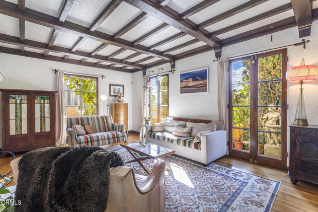 Welcome to Silver Lake! You'll be one block away from coffee, cocktails, dining and more, while also reveling in the tranquil surrounds of this magnificent 1925 character home. Take a role in the next chapter of this little slice of Los Angeles history, an address that has made cameos in films from 1930s noir to a modern-day rom com. Be delighted when you discover all the surprises beyond the street level gate and parking. Private patios, mature landscaping, smashing views, and pedigreed architectural details abound. Entertaining here will be unmatched. Enjoy preparing amazing meals with the classic O'Keefe and Merrit stove, or use the grill set up at the charming outdoor kitchen patio. This stately home provides all the craftsmanship of arts and crafts era designers, while at the same time providing a parcel size which allows for turnkey living when desired. The laundry nook and an outdoor sauna are tucked away for use as they are, or ripe for re-envisioning. Proof of this quintessential Los Angeles locale, from the privacy of your relaxing balcony, a view of the Hollywood sign and the Griffith Observatory in the distance! This is the perfect combination of access to fully cultured city living and retreat-style privacy. The zoning here allows multiple dwellings.