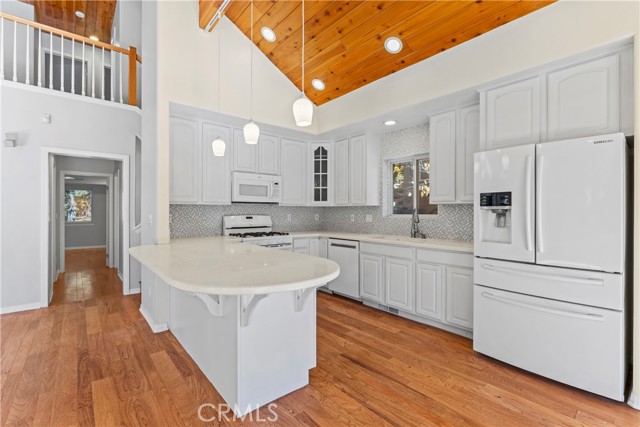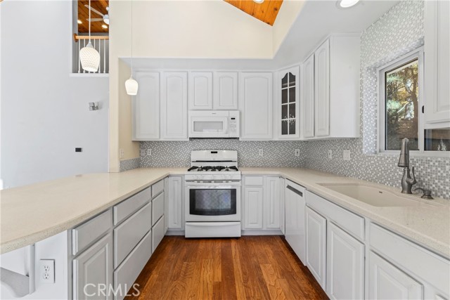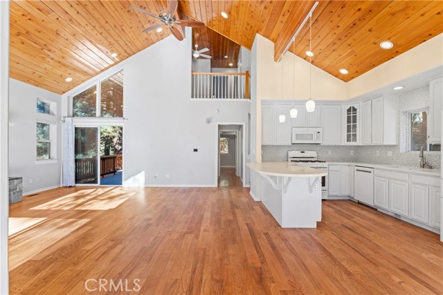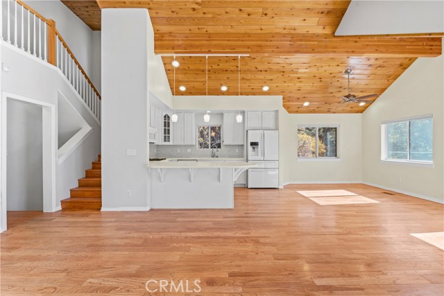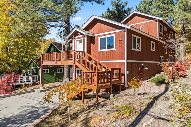 Off the Charts Pride of Ownership on this Completely Remodeled Dramatic 3-Story Residence boasting 2,340 sqft of Gleaming Hardwood Flooring with towering Mirror Sheen Knotty Pine Ceilings, Open Kitchen with Convection Oven and Barstool Counter opens to Dining and Living Room with Fireplace all Drenched in Natural Light, Dual Pane Tinted Windows throughout, Surround Sound on First and Second Floors, Primary Ensuite Bedroom, 2 Guest Bedrooms, Expansive Closet Spaces and Custom Shelving, Rare Over-sized Laundry Room with Side by Side Washer and Dryer, Entertaining Decking Areas with inviting Jacuzzi, Epoxy Flooring Immaculate Utility Room inclusive of Water Purification System, Natural Gas Forced Air Heating Unit and 2-On Demand Water Heaters one for the Residence and the other for the Heated Cement Driveway with 2-Zones, Family Room with Fireplace, Bonus Fenced Rear Yard and Storage Area Workshop complete with Stainless Dog Washing Sink and Toilet and of course the Garden Area is complete with Irrigation Sprinklers. Absolute Impeccable Turnkey Residence and one of the finest homes offered in this Treasured Community of Green Valley Lake!