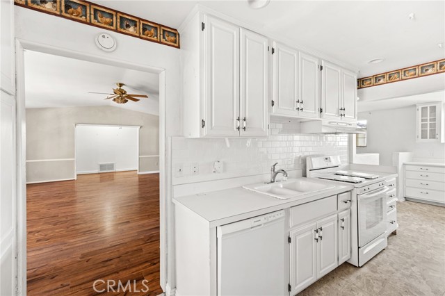 Charming Home with SO MUCH Character and Space! This delightful 2-bedroom, 2-bath home offers a welcoming feeling the moment you arrive. You can feel the personality when you walk through the door! The inviting floor plan features spacious rooms, built-in wall bookshelf and beautiful wooden window valances that add timeless character. The cozy fireplace creates the perfect gathering spot, and the adorable cheerful kitchen includes a built-in desk and open shelving for extra charm and functionality. Step outside to enjoy a nice sized backyard filled with mature shade trees and fruit trees, plus two handy storage sheds and an enclosed/screened porch—a great place to relax or unwind. The one-car garage includes built-in cabinets and a workbench for added convenience. This home has been loved - with thoughtful updates made over the years and a warm, homey atmosphere that’s hard to find. Conveniently located near shopping, restaurants, and community centers, this home is full of charm, comfort, and personality—ready for its next chapter!
